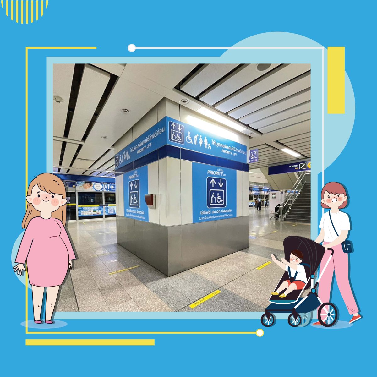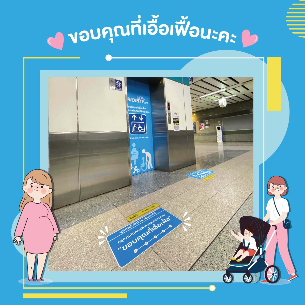 สำหรับ “Priority Lift” นี้ จะมีป้ายที่มีสีโดดเด่น ขนาดใหญ่ เพื่อให้ผู้ใช้บริการสามารถมองเห็นได้ชัดเจนและเลือกใช้ลิฟต์ได้ง่ายขึ้น เพิ่มความสะดวกและปลอดภัยในการเดินทางสำหรับบุคคลพิเศษ เป็นสัญลักษณ์ของการส่งเสริมความร่วมมือจากบุคคลทั่วไปในการเอื้อเฟื้อต่อบุคคลพิเศษเป็นลำดับแรก ส่วนสถานีอื่นๆ ยังคงมีลิฟต์พร้อมให้บริการทุกสถานี สังเกตป้ายสัญลักษณ์ตั้งแต่บริเวณทางเข้า-ออกสถานี ชั้นออกบัตรโดยสาร และชั้นชานชาลา