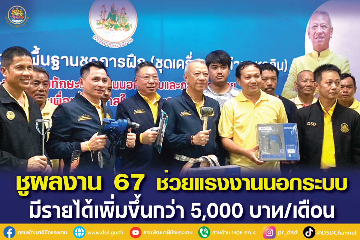 อธิบดีกรมพัฒนาฝีมือแรงงาน ชูผลงานพัฒนาทักษะแรงงานนอกระบบ ปี 67 ฝึกอบรมให้ผู้มีบัตรสวัสดิการแห่งรัฐ แรงงานนอกระบบ ผู้รับจ้างทั่วไป และผู้ประกอบอาชีพอิสระ รวมถึงแรงงานที่เดินทางกลับเนื่องจากผลกระทบจากเหตุการณ์สู้รบจากประเทศอิสราเอล เพิ่มทักษะด้านอาชีพช่วยแรงงานมีรายได้เพิ่มขึ้นกว่า 16,800 คน มีรายได้เฉลี่ยกว่า 5,000 บาทต่อเดือน