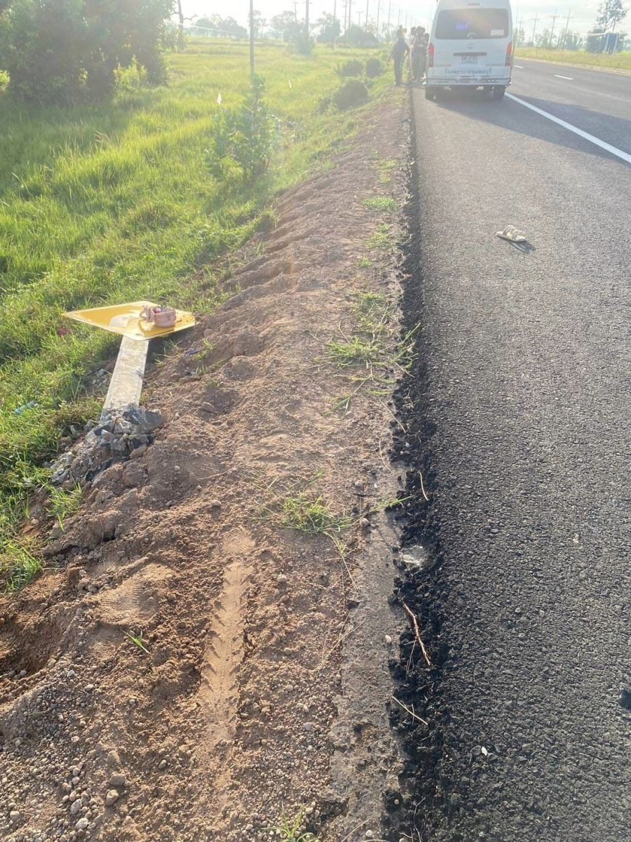 รถจักรยานยนต์ชนเสาปูนป้ายจราจร ริมถนนทางหลวงหมายเลข 2081 มีผู้เสียชีวิต 2 ราย จ.สุรินทร์
