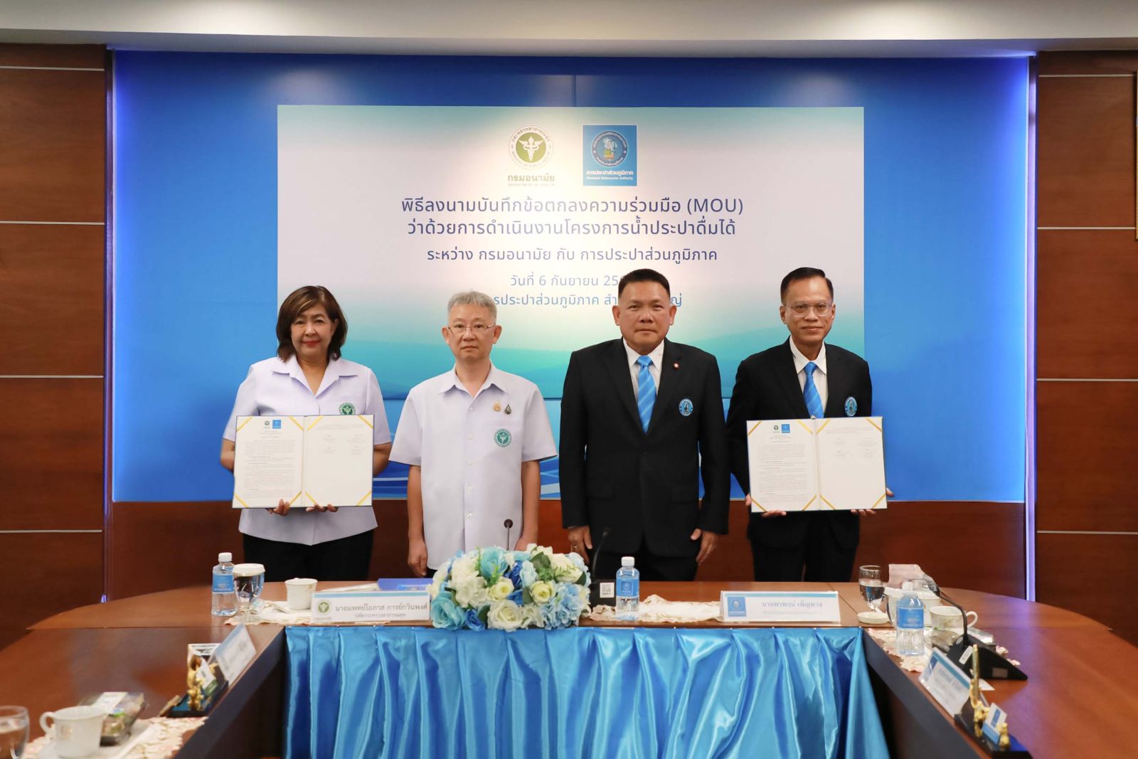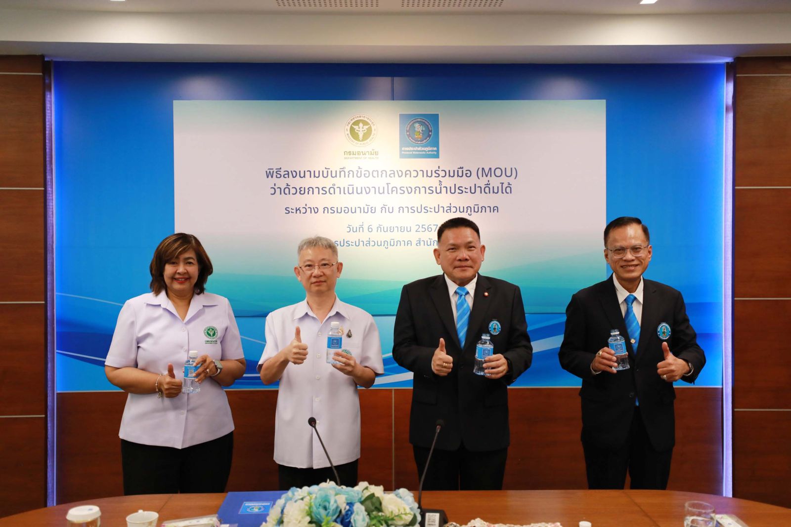 การประปาส่วนภูมิภาค (กปภ.) และกรมอนามัย ร่วมลงนามบันทึกข้อตกลงความร่วมมือว่าด้วยการดำเนินงานโครงการน้ำประปาดื่มได้ เพื่อสร้างความเชื่อมั่นและตระหนักถึงความสำคัญของน้ำประปาที่สะอาด ปลอดภัย ต่อสุขภาพของประชาชนและดื่มได้ โดยมี นายแพทย์โอภาส การย์กวินพงศ์ ปลัดกระทรวงสาธารณสุข นายพรพจน์ เพ็ญพาส อธิบดีกรมที่ดิน