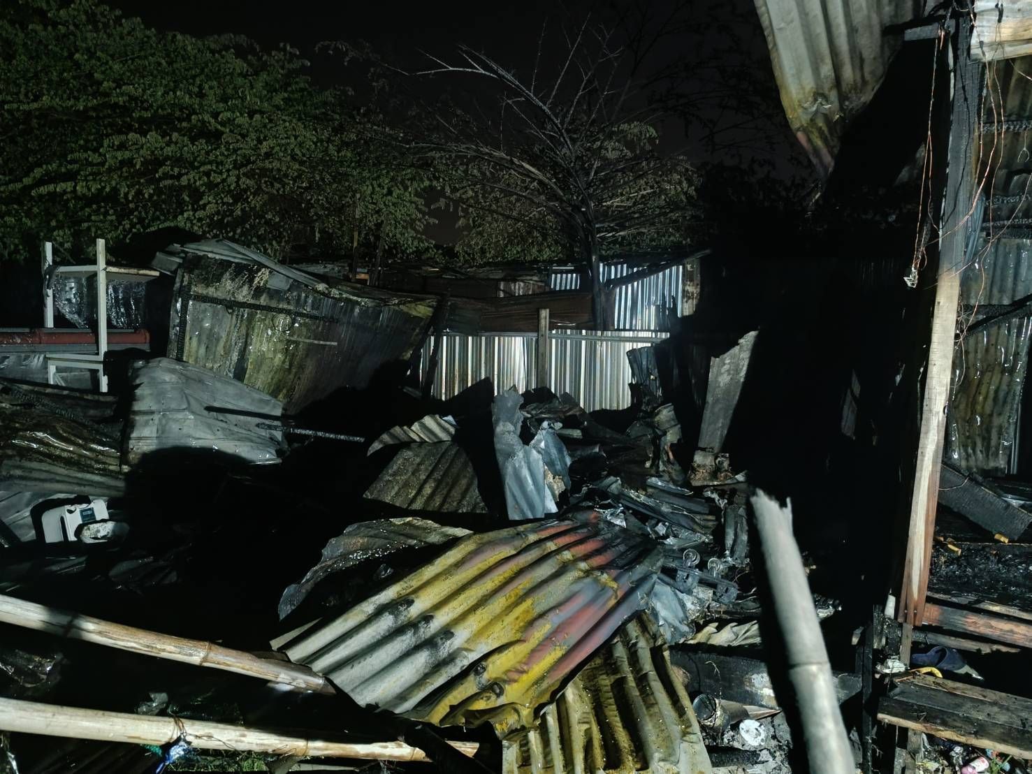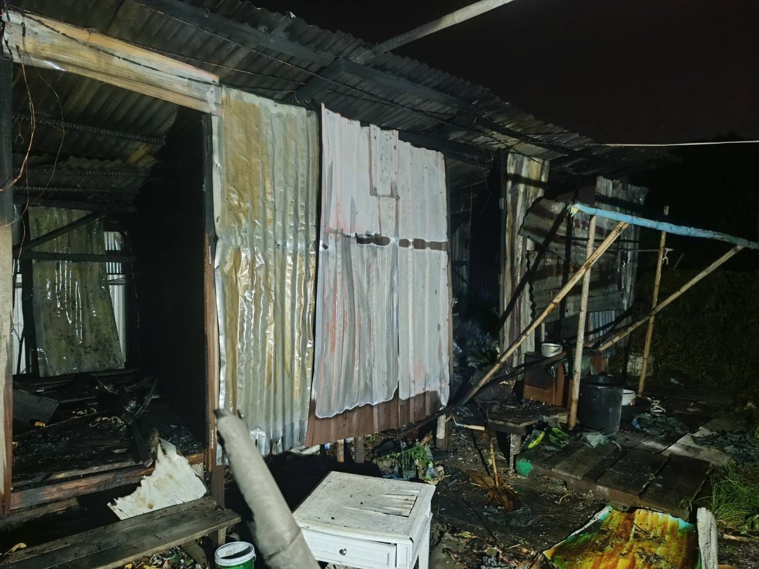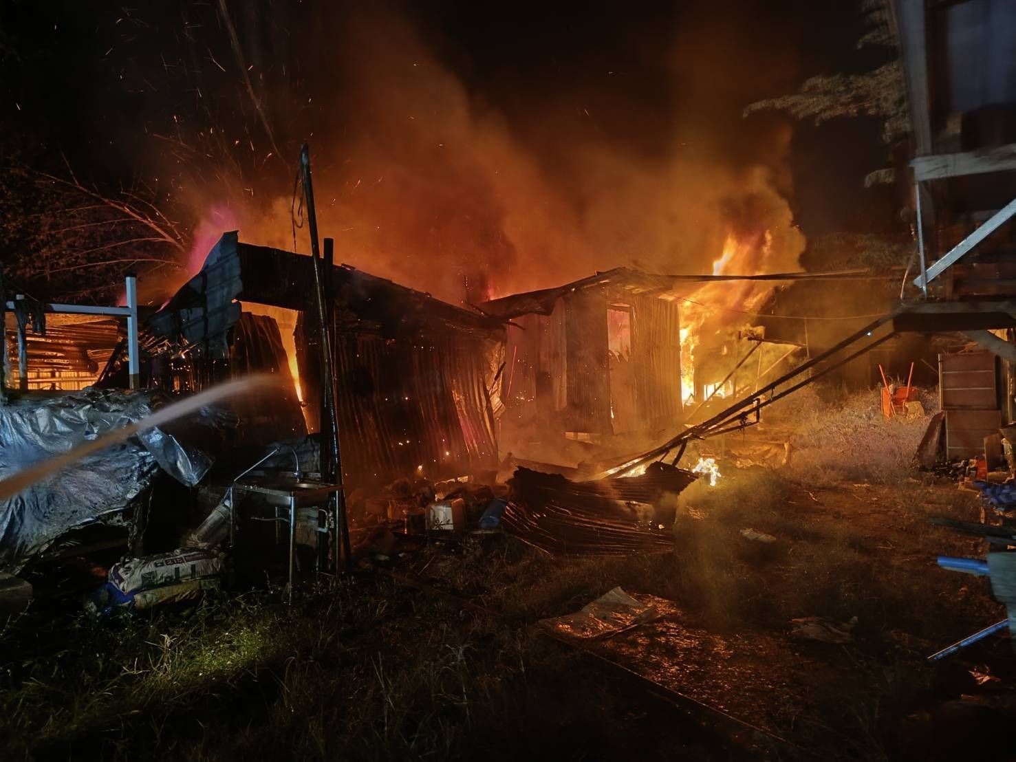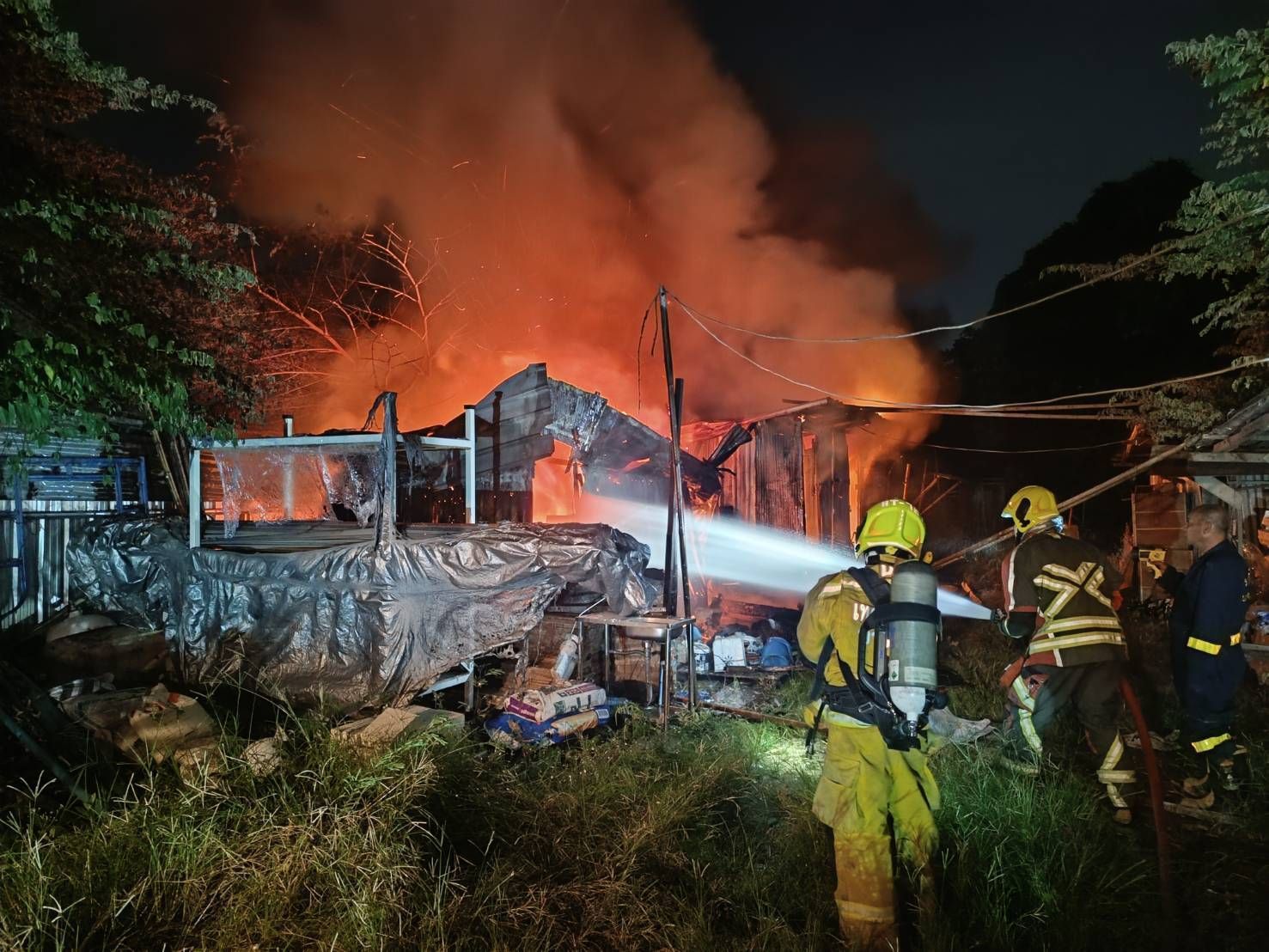 ไฟไหม้เพิงพักในแคมป์คนงาน เสียหายวอด จนท.พร้อมรถดับเพลิงระดมหัวฉีดน้ำเข้าควบคุมสถานการณ์ จ.นนทบุรี