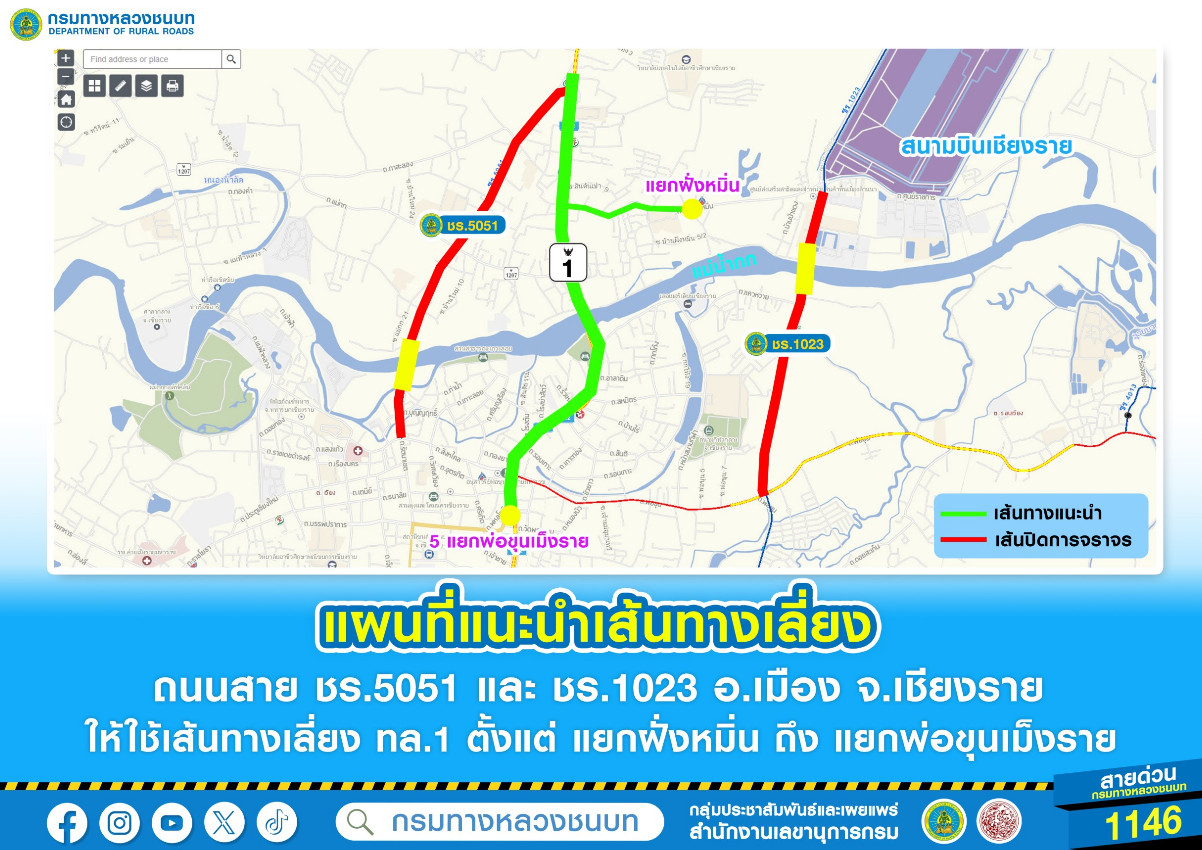 ทั้งนี้ หากประชาชนที่ได้รับผลกระทบและต้องการความช่วยเหลือ สามารถติดต่อได้ที่แขวงทางหลวงชนบทเชียงราย โทร 0 5315 2035 หรือสายด่วนกรมทางหลวงชนบท 1146