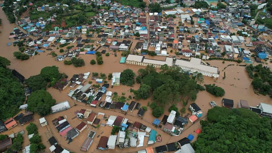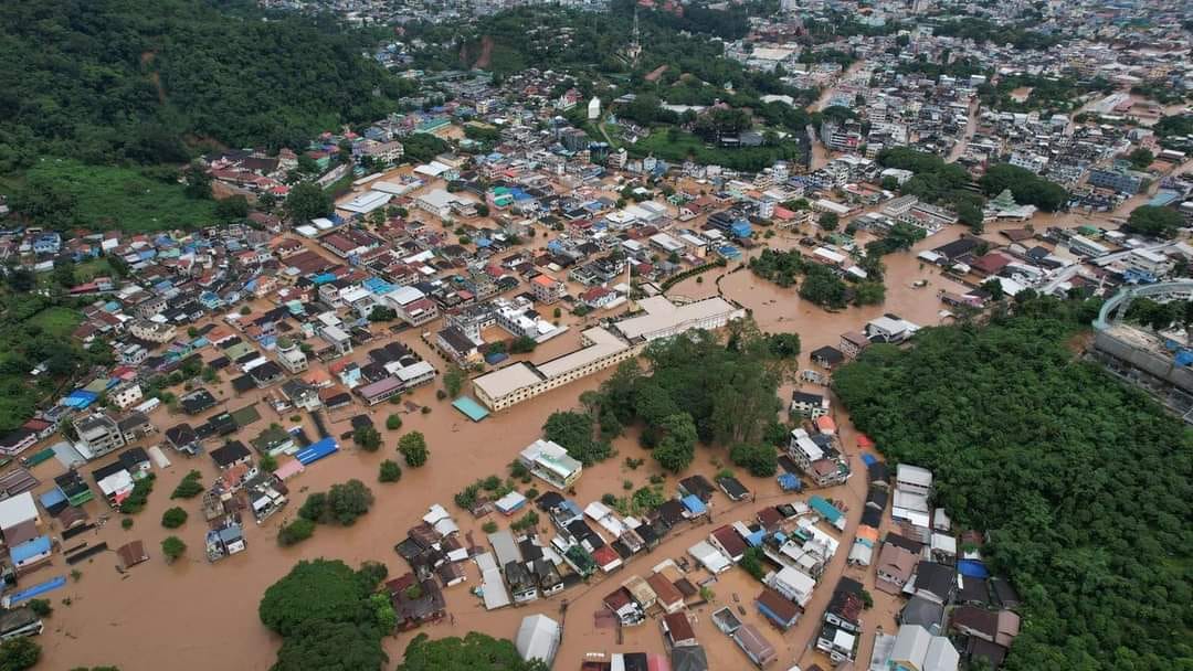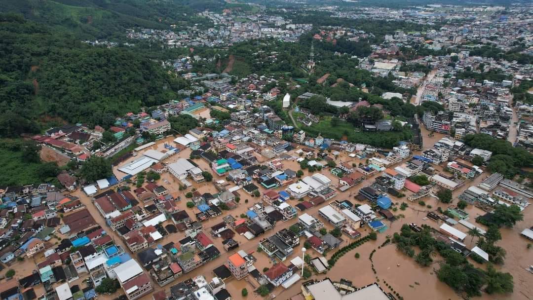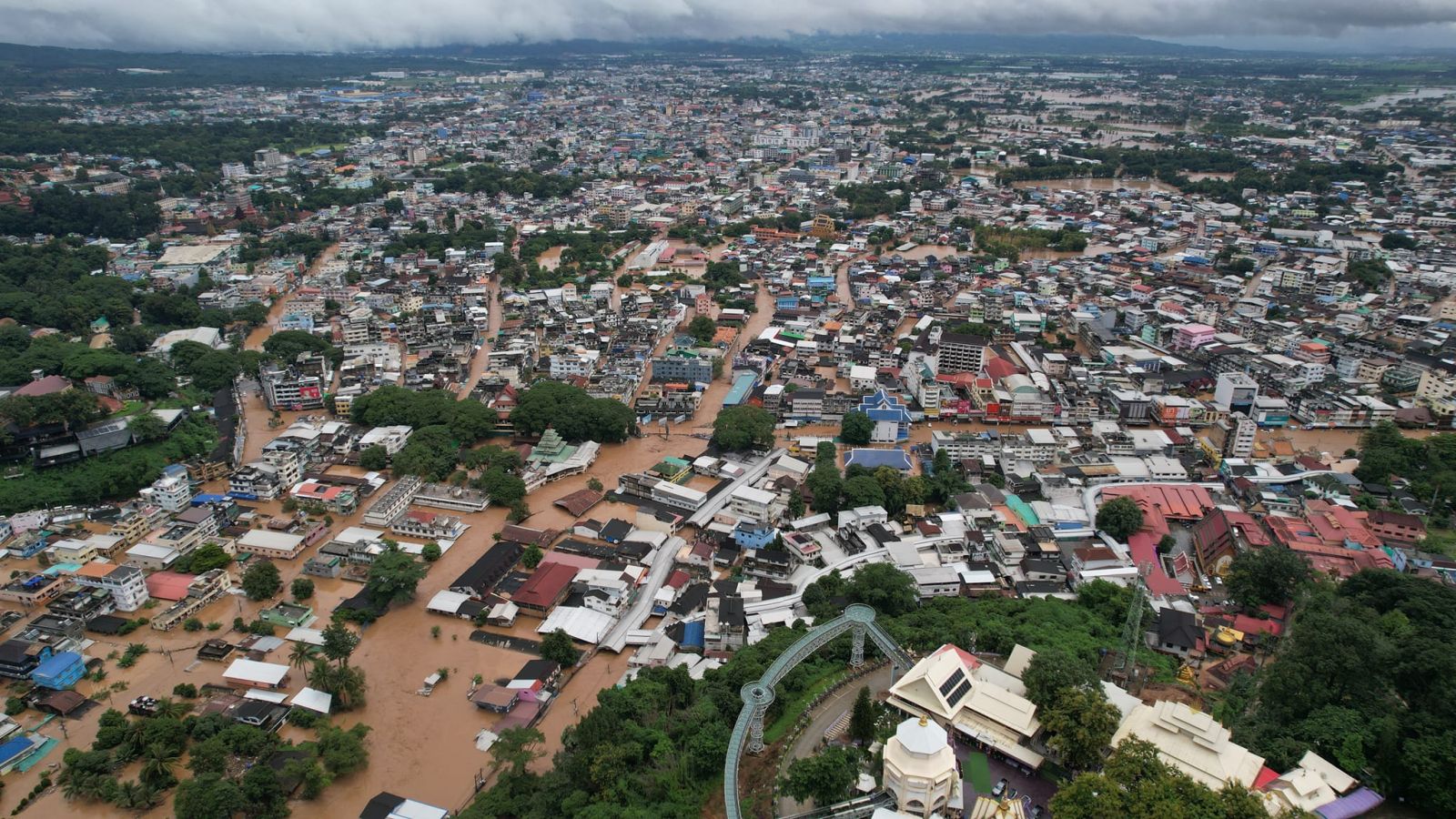 (11 กันยา 67) เวลา 12.50 น. ภาพมุมสูง บริเวณ ถ้ำผาจม บ้านแม่สาย ม.1 ต.เวียงพางคำ อ.แม่สาย จ.เชียงราย ซึ่งกำลังประสบอุทกภัยอยู่ขณะนี้ น้ำท่วมเชียงราย