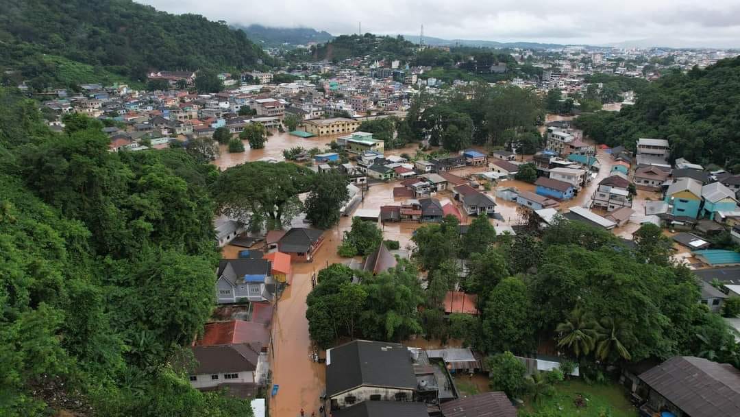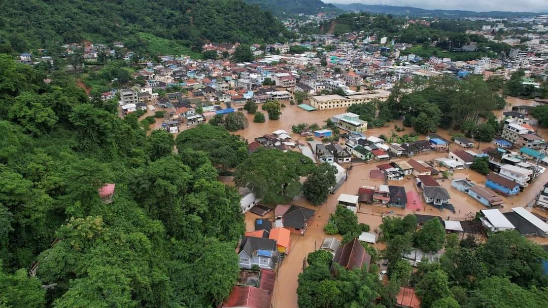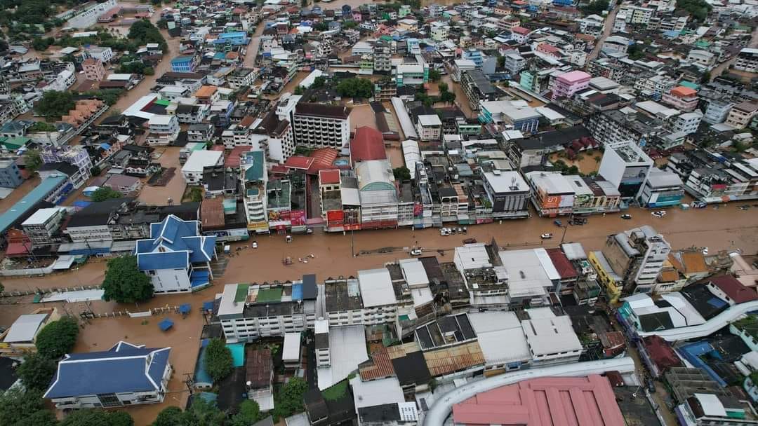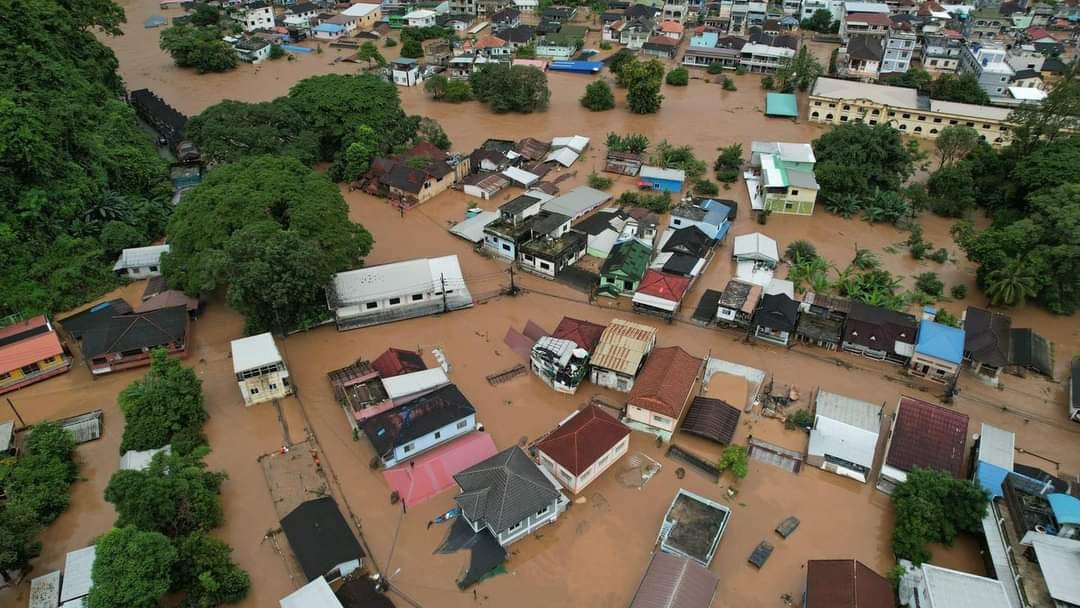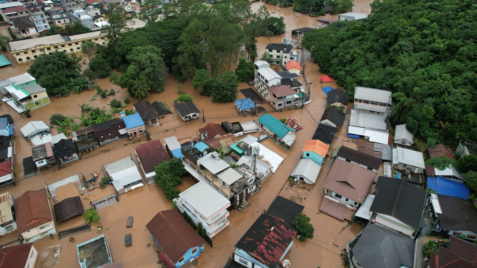(11 กันยา 67) เวลา 12.50 น. ภาพมุมสูง บริเวณ ถ้ำผาจม บ้านแม่สาย ม.1 ต.เวียงพางคำ อ.แม่สาย จ.เชียงราย ซึ่งกำลังประสบอุทกภัยอยู่ขณะนี้ น้ำท่วมเชียงราย