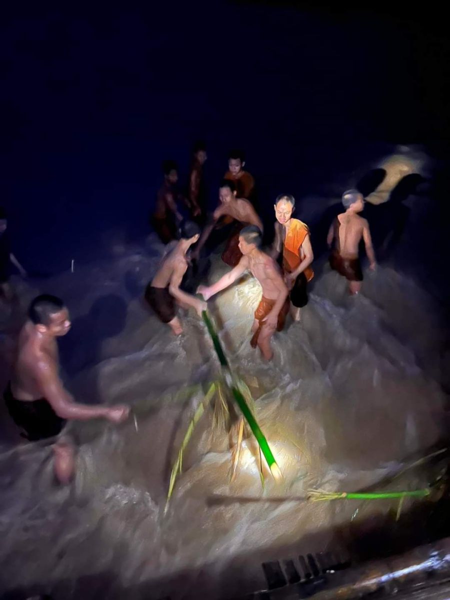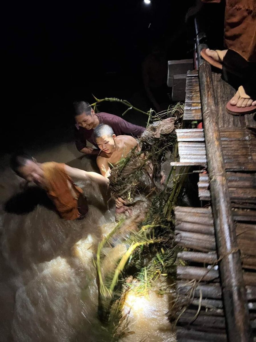วันที่ 11 กันยายน 2567 เวลา 20.00 น. พระเณร วัดภูสมณาราม ช่วยกันดันเศษไม้ที่ไหลมาติดออกจากใต้สะพานซูตองเป้ ท่ามกลางกระเเสน้ำไหลแรง ที่บ้านกุงไม้สัก ต.ปางหมู อ.เมืองแม่ฮ่องสอน จ.แม่ฮ่องสอน