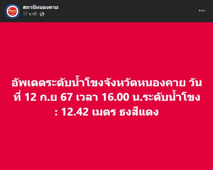 โดยปริมาณน้ำล่าสุดวันนี้ 12 ก.ย 67 เวลา 12.00 น. ระดับน้ำอยู่ที่ 12.20 เมตร ห่างจากตลิ่งเพียง 80 ซ.ม มีแนวโน้วว่าจะเพิ่มขึ้นอย่างต่อเนื่องเฉลี่ยชั่วโมงละ 9-10 ซ.ม ขอให้พี่น้องประชาชนติดตามข่าวสารอย่างต่อเนื่อง มีเหตุการณ์ทางเพจจะรายงานอย่างต่อเนื่อง