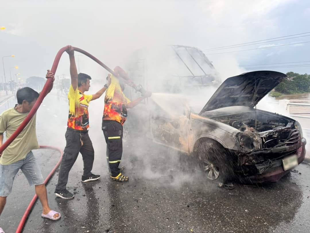 เวลา 17.10 น. วันที่ 12 กันยายน 2567 สำนักงานป้องกันและบรรเทาสาธารณภัยเทศบาลเมืองสิงห์บุรี ได้รับแจ้งเหตุไฟไหม้รถยนต์ ที่บริเวณบนสะพานบางระจัน ถนนหมายเลข 311 ในพื้นที่ อำเภอเมือง จังหวัดสิงห์บุรี