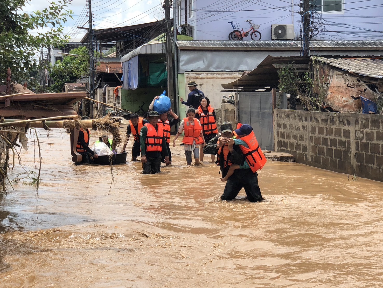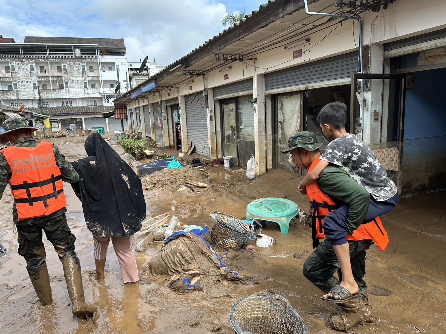 โดยตลอดทั้งวันในวันนี้ ทางกำลังพลกองทัพบก ได้เข้าช่วยเหลือประชาชนที่ประสบอุทกภัย โดยการเคลื่อนย้ายประชาชนที่สูงอายุ และมีอาการเจ็บป่วย และอยู่ในพื้นที่น้ำท่วมไปยังจุดที่ปลอดภัย พร้อมทั้งแจกจ่ายอาหารกล่องและเครื่องดื่ม ในพื้นที่ บ.เกาะทราย และ บ้านเหมืองแดง ต.ท่าสาย อ.แม่สาย