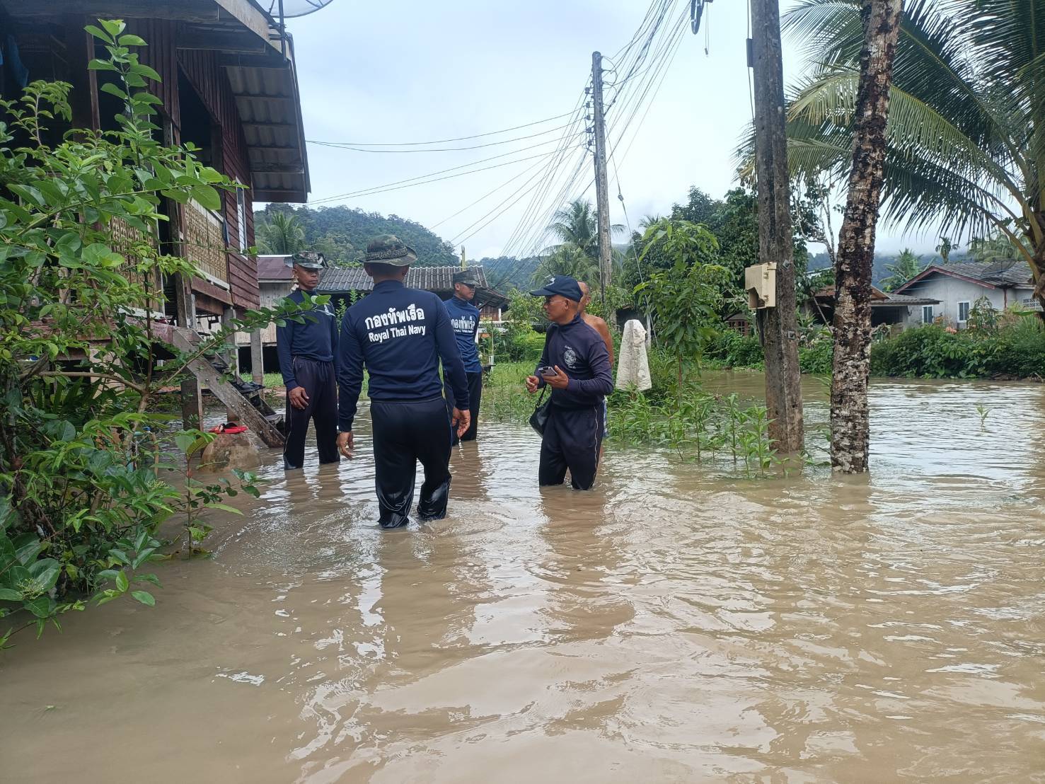 ล่าสุด เรือโท สุโภชน์ ทองย้อย รองผู้บังคับหน่วยปฏิบัติการต่อสู้อากาศยานและรักษาฝั่งที่ 452 เป็นหัวหน้าชุดบรรเทาสาธารณภัย สังกัดทัพเรือภาคที่3 รับผิดชอบในพื้นที่จังหวัดสตูลพร้อมกำลังพล ลงพื้นที่ไปช่วยเหลือชาวบ้านและเข้าสอบถามชาวบ้านที่กำลังรับผลกระทบจากน้ำที่กำลังไหลเข้าท่วมอยู่ในขณะนี้ในพื้นนที่ต่างๆ และช่วยเอาทรายใส่กระสอบเพื่อเอาไปให้ชาวบ้านกันเป็นแนวกันน้ำ ส่วนสถานการณ์ขณะนี้มวลน้ำไหลไปสู่พื้นที่ย่านเศษฐ์กิจตำบลฉลุง อำเภอเมืองสตูล ปริมาณน้ำพบว่าล้นตลิ่งไม่มากนัก ต้องรอดูสถานการณ์คืนนี้ว่าจะมีฝนเติมมาในพื้นที่ต้นน้ำหรือไม่ หากว่าจะทำให้น้ำระบายได้เร็วขึ้น ซึ่งทั้งนี้จะต้องขึ้นอยู่กับปริมาณน้ำทะเลหนุนด้วย ที่จะเป็นปัจจัยเสริม พร้อมฝากเตือนพี่น้องประชาชนที่อยู่ในพื้นที่ลุ่มต่ำ พื้นที่การเกษตรและพื้นที่ติดแม่น้ำ ขอให้ติดตามสถานการณ์การแจ้งเตือนภัยอย่างใกล้ชิด หากเป็นพื้นที่เสี่ยงแนะนำให้ยกของไว้บนที่สูง โดยเฉพาะกลุ่มคนแก่และผู้เปราะบาง.