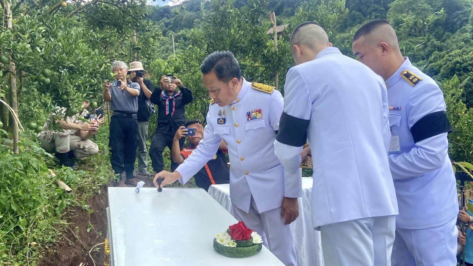 เมื่อวันที่ 16 ก.ย.67 เวลา 10.30 น. พระบาทสมเด็จพระเจ้าอยู่หัว ทรงพระกรุณาโปรดเกล้าฯ ให้นายนิรัตน์ พงษ์สิทธิถาวร ผู้ว่าราชการจังหวัดเชียงใหม่ เป็นประธานในพิธีพระราชทานดินฝังศพเป็นกรณีพิเศษ ให้แก่ นายธีรยุทธ สิริวรรณสถิต ผู้ใหญ่บ้าน บ้านดอยแหลม ที่ สวนส้มบ้านดอยแหลม หมู่ 13 ตำบลแม่อาย อ.แม่อาย จังหวัดเชียงใหม่ หลังเสียชีวิตจากเหตุดินสไลด์