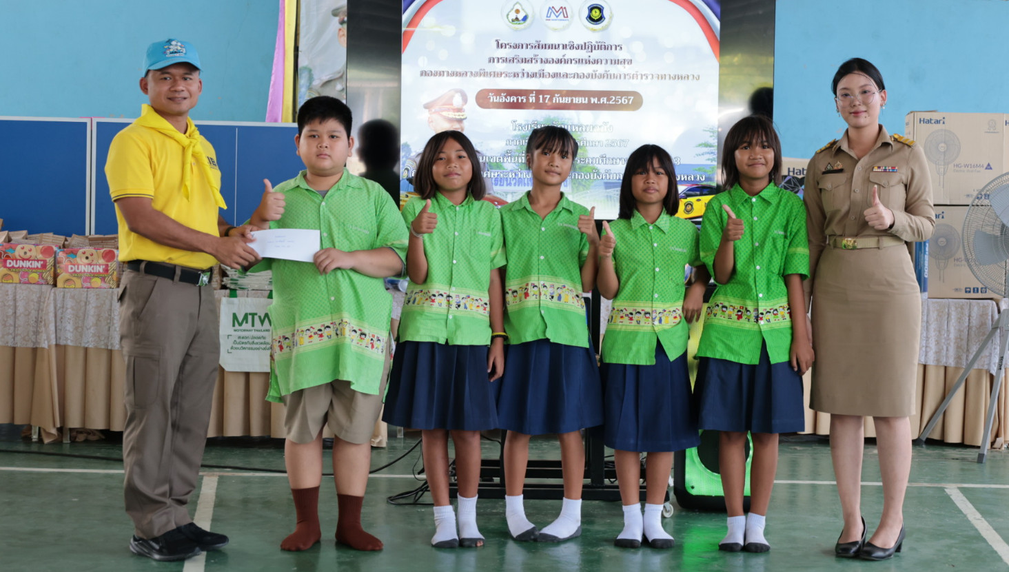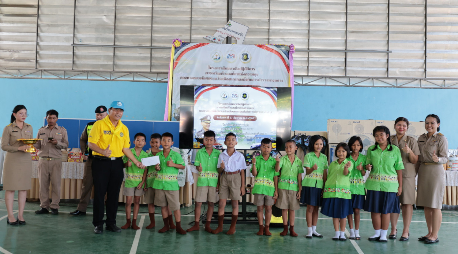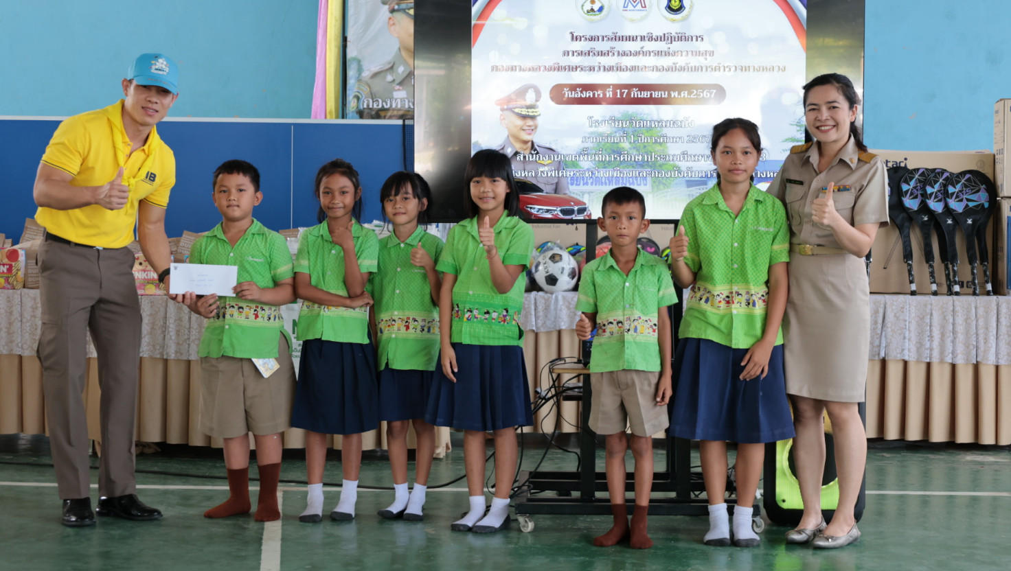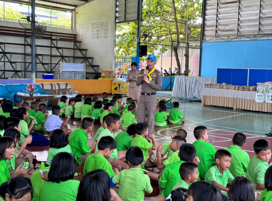 นอกจากนี้ยังได้ร่วมกันแบ่งปันรอยยิ้มและความสุขให้แก่นักเรียน โรงเรียนวัดแหลมฉบัง อ.ศรีราชา จ.ชลบุรี โดยเลี้ยงอาหารกลางวันและสนับสนุนสิ่งของจำเป็นต่อการศึกษา เช่น อุปกรณ์กีฬา อุปกรณ์เครื่องเขียน เครื่องใช้ไฟฟ้า ตู้น้ำดื่มพร้อมระบบกรองน้ำสะอาด ปรับปรุงทาสีอาคารเรียนและปรับปรุงห้องน้ำ เพื่อสนับสนุนการศึกษาที่มีคุณภาพ พัฒนากระบวนการเรียนรู้และคุณภาพชีวิตของน้องๆ นักเรียน ซึ่งจะเป็นจุดเริ่มต้นในการพัฒนาบุคลากรที่มีคุณภาพในสังคมต่อไป