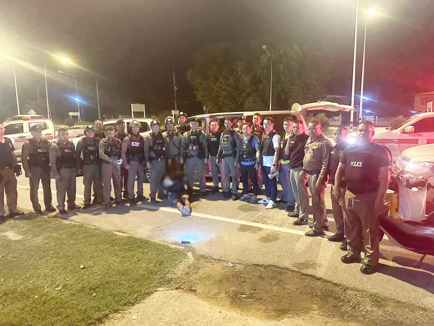 ต่อมา ทาง สภ.เขาสวนกลาง ได้แจ้งประสานไปยัง สภ.เมืองขอนแก่น สภ.ท่าพระ ได้ตั้งด่านสกัดจับ แต่คนร้ายไม่ยอมจอดขับผ่านด่านหลบหนีต่อ มุ่งหน้าเข้าไปยังเขตรับผิดชอบของ สภ.อำเภอบ้านแฮด ทางเจ้าหน้าที่ ใช้รถยนต์สายตรวจ 4 คัน และรถจักรยานยนต์สายตรวจอีก 8 คัน ไล่สกัดไว้ได้พร้อมคุมตัวคนร้ายชาย 1 ราย ก่อนนำส่ง สภ.เขาสวนกวาง ดำเนินคดีต่อไป