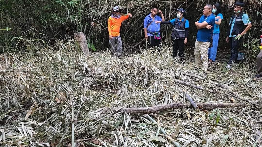 ที่เกิดเหตุอยู่ในพื้นที่ป่าไผ่หนาทึบ โดยเส้นทางเข้าสูงชันและเต็มไปด้วยหิน เจ้าหน้าที่จำเป็นต้องใช้รถขับเคลื่อน 4 ล้อเข้าไป จากนั้นยังต้องเดินเท้าอีกประมาณ 300 เมตรเพื่อถึงจุดที่พบหลุม เมื่อเดินทางถึงพื้นที่ดังกล่าว เจ้าหน้าที่พบพื้นดินถูกแผ้วถาง และกิ่งไผ่จำนวนมากถูกนำมาวางทับอย่างมีนัยสำคัญ ซึ่งดูเหมือนจะเป็นการอำพรางร่องรอยการขุดหลุม เจ้าหน้าที่พิสูจน์หลักฐานจึงกันพื้นที่ เก็บหลักฐานเบื้องต้น ก่อนจะเริ่มทำการขุดสำรวจ