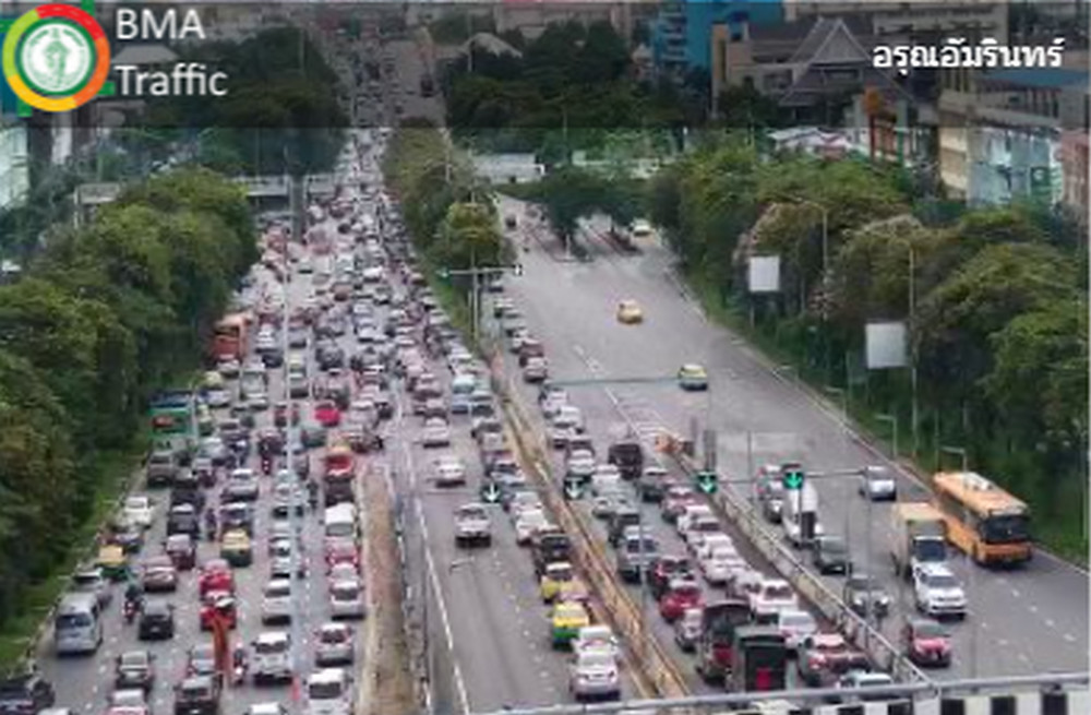 - สะพานพระราม 8 ขาเข้า ท้ายแถวสะสมอยู่ที่แยกอรุณอมรินทร์