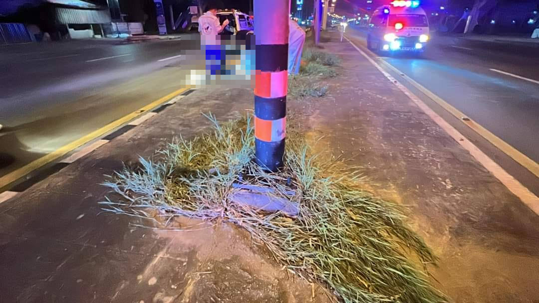 หนุ่มวัย 31 ปีขับขี่รถจักรยานยนต์ป้ายแดง เสียหลักชนเสาจราจรเกาะกลาง เสียชีวิตริมถนนพุทธสาคร จ.สมุทรสาคร