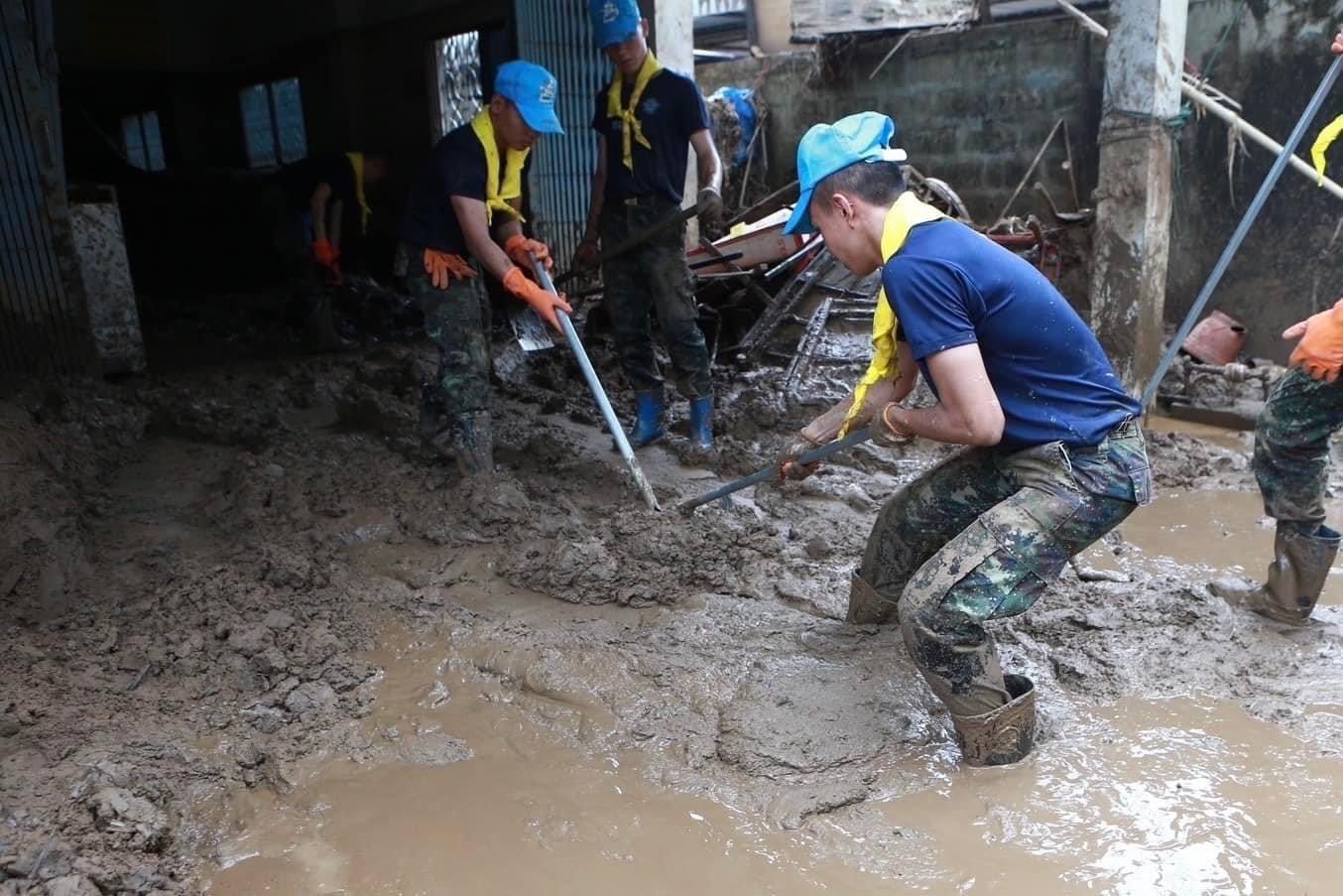 โดยปัจจุบันหน่วยบัญชาการทหารพัฒนา จัดกำลังจาก สำนักงานพัฒนาภาค 3 หน่วยบัญชาการทหารพัฒนารวม 100 นาย และยุทโธปกรณ์ของหน่วย ประกอบด้วย รถขุดตัก 5 คัน รถตักบรรทุก 5 คัน รถสะพานเครื่องหนุนมั่น 1 คัน รถบรรทุก 6 ล้อ 5 คัน รถบรรทุก 10 ล้อ 3 คัน รถพ่วงชานต่ำ 1 คัน รถบรรทุกน้ำ 3 คัน ผนึกกำลังกับหน่วยทหารที่มาขึ้นสมทบการปฏิบัติ ได้แก่ กองพันทหารสารวัตร สำนักกองบัญชาการ กองบัญชาการกองทัพไทย และ กองพันทหารสื่อสาร กองบัญชาการกองทัพไทย จำนวน 100 นาย โดยจัดแบ่งกำลังเป็น 5 ชุด ชุดละ 20 นาย เข้าทำความสะอาดฟื้นฟูพื้นที่ที่ได้รับความเสียหาย
