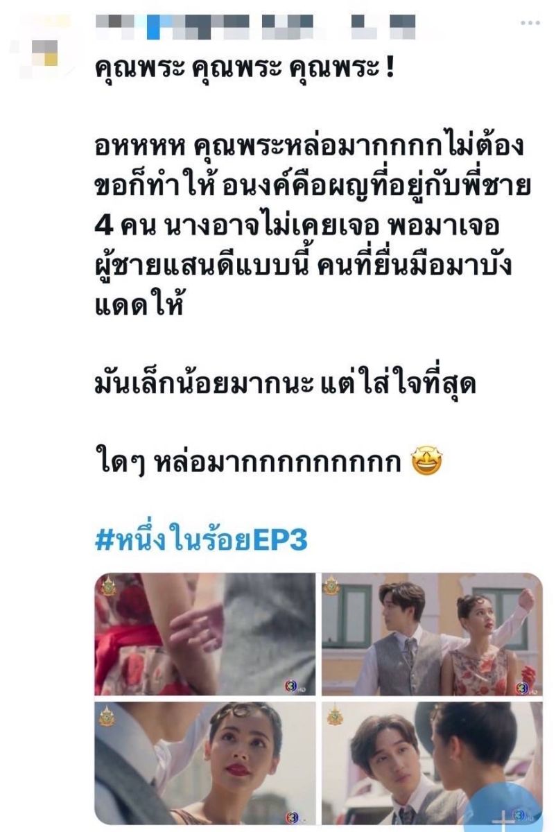 เรียกว่าเปิดมาอย่างละมุนละม่อม แต่ก็ฟาดเรียบทั้งเรตติ้งทีวี และออนไลน์ โดยเรตติ้ง อีพี 2 กลุ่มคนกรุงเทพฯ ทำไปได้ถึง 2.8 กลุ่ม 15 BU+ (Bangkok and Urban) ทำไป 2.1สำหรับ อีพี 3 กลุ่มคนกรุงเทพฯ ทุบสถิติสูงถึง 2.9 กลุ่ม 15 BU+ (Bangkok and Urban) คว้าไป 2.1 สมแล้วที่ได้พระเอก ต่อ ธนภพ มาเป็น “คุณพระ” เพราะไม่ว่าจะเป็นซีนที่คุณพระยื่นมือมาบังแดดให้อนงค์(ญาญ่า อุรัสยา) ตอนข้ามถนน หรือซีนแอบชมสาว ก็ดูอบอุ่นละมุนจิตไปซะหมด ทำเอาคนดูนั่งอมยิ้มแก้มแตกทีเดียว กับความสัมพันธ์ของทั้งคู่ที่ค่อย ๆ พัฒนาขึ้นแบบไม่รู้ตัว ทั้งยังสมทบความสนุกด้วยตัวชงเบอร์หนึ่งอย่างประสิทธิ์(ปีเตอร์แพน ทัศน์พล) ที่แฟน ๆ แห่ชมถึงความน่ารัก และการเปิดตัวของจันทร(หลิงหลิง คอง) แม้มาแบบนิ่ง ๆ สไตล์สาวเรียบร้อย แต่เต็มไปด้วยเสน่ห์ที่หลายคนจับตามองอยู่ไม่น้อย นับวันสีสันความสนุกยิ่งทวีคูณชวนนั่งไม่ติดเก้าอี้จริง ๆ