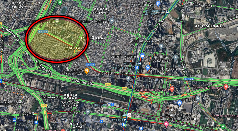 ถนนดินแดง ขาเข้า ก่อนถึงแยกใต้ด่วนฯ ดินแดง มีเจ้าหน้าที่ทำงาน รถสะสมถึงบนยกระดับพระรามเก้า