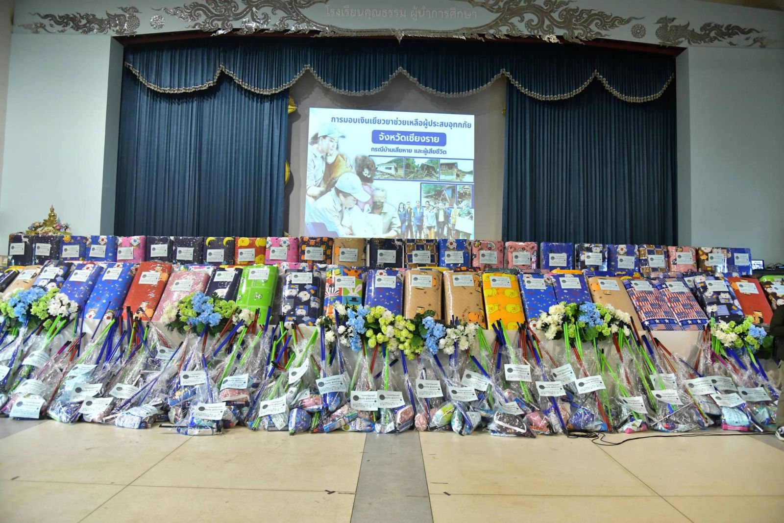 โอกาสนี้ นายกรัฐมนตรีได้มอบเงินช่วยเหลือผู้ประสบอุทกภัยอำเภอเมืองเชียงราย จำนวน 30 ครอบครัว เป็นเงิน 1,485,000 บาท อำเภอเทิง จำนวน 6 ครอบครัว เป็นเงิน 297,000 บาท อำเภอเวียงแก่น จำนวน 18 ครอบครัว เป็นเงิน 891,000 บาท และมอบเงินช่วยเหลือฯ ตาม มติ ครม. เมื่อวันที่ 17 กันยายน 2567 ช่วยเหลือผู้ประสบภัยน้ำท่วม พร้อมมอบชุดอุปกรณ์ทำความสะอาดบ้านเรือนให้กับผู้ประสบภัย