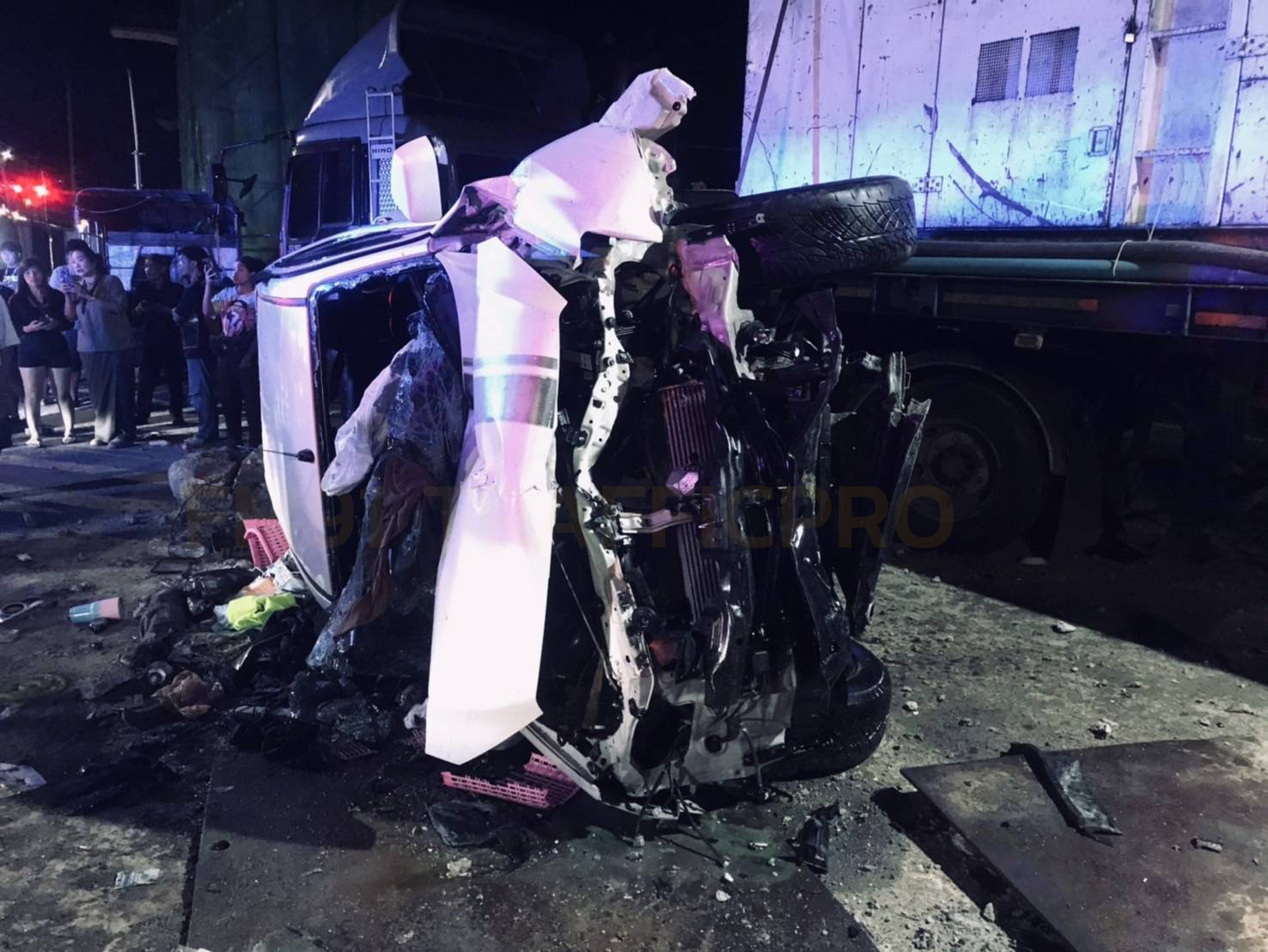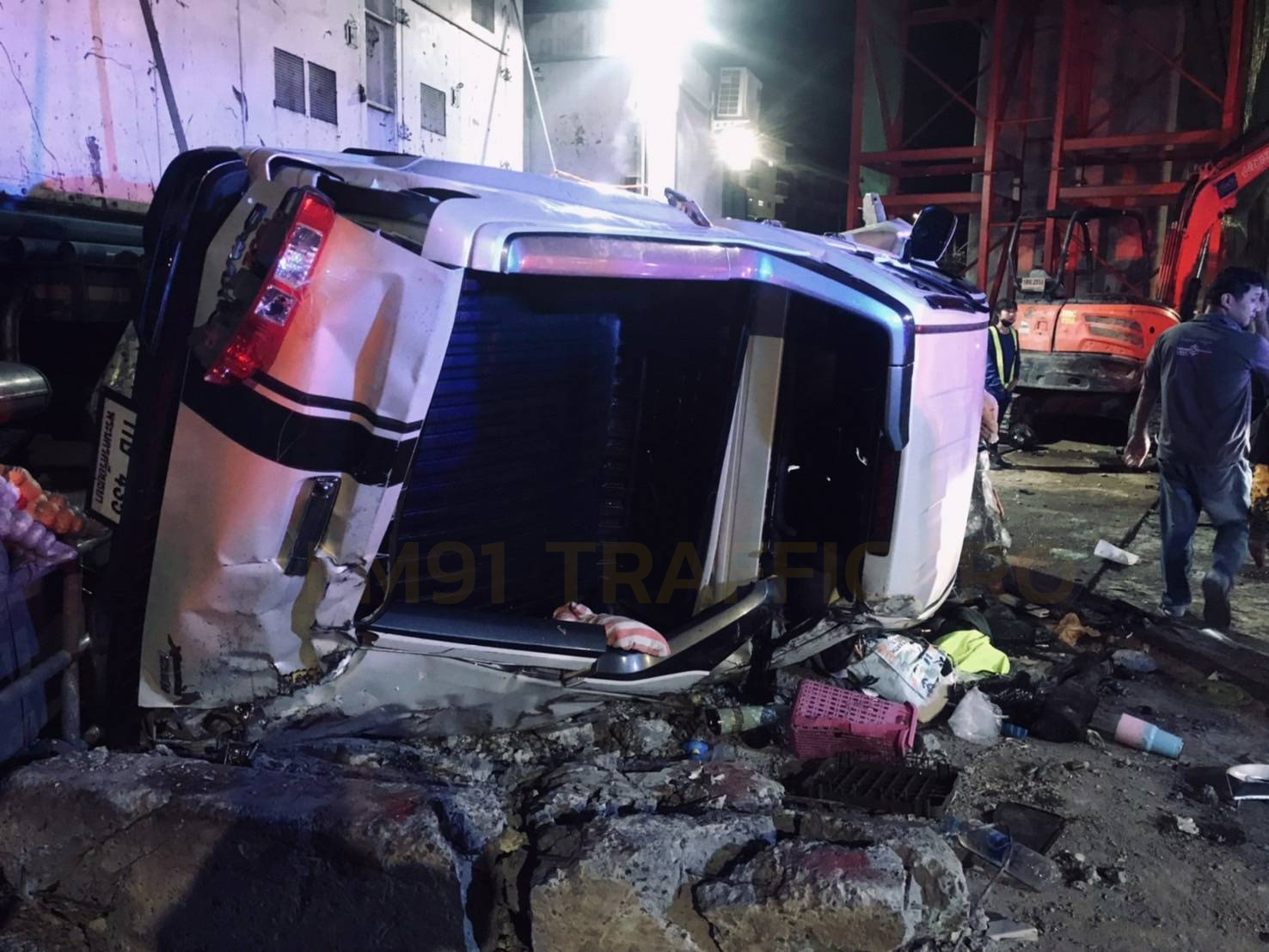 "มีแต่ทางขึ้น" กระบะหลงขึ้นสะพานกำลังก่อสร้างพลัดตกใกล้แยกสุขสมาน รถพังยับ เจ็บ 3 ราย พ่อ-แม่-ลูกวัย 1 ขวบ