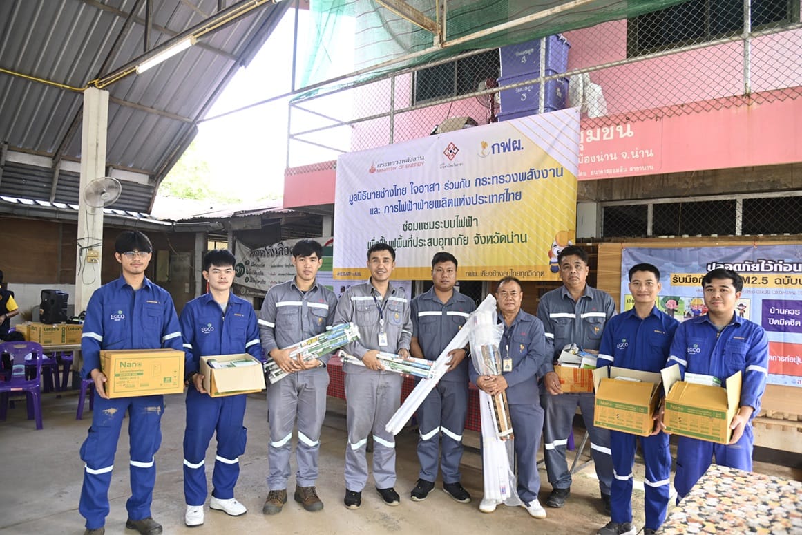 มูลนิธินายช่างไทย ใจอาสา ร่วมกับทีมจิตอาสา กฟผ. ลงพื้นที่ฟื้นฟูระบบไฟฟ้าในพื้นที่ประสบอุทกภัย จ.น่าน ให้สามารถใช้งานได้อย่างปลอดภัย พร้อมเตรียมขยายผลไปยังพื้นที่ จ.เชียงราย ในสัปดาห์หน้า แนะประชาชนตรวจสอบอุปกรณ์ไฟฟ้าที่โดนน้ำท่วมก่อนใช้งานเพื่อความปลอดภัย