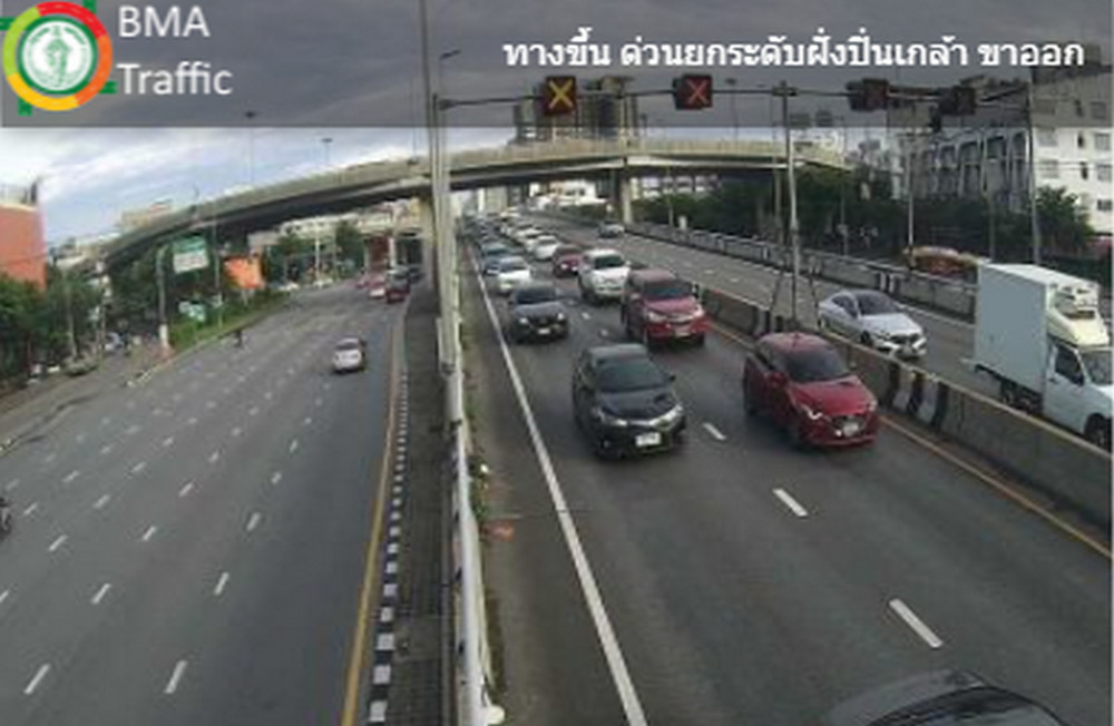 - สะพานสมเด็จพระปิ่นเกล้า ขาเข้า ท้ายขึ้นไปบนคู่ขนานลอยฟ้า ช่วงเหนือเมเจอร์ ปิ่นเกล้า