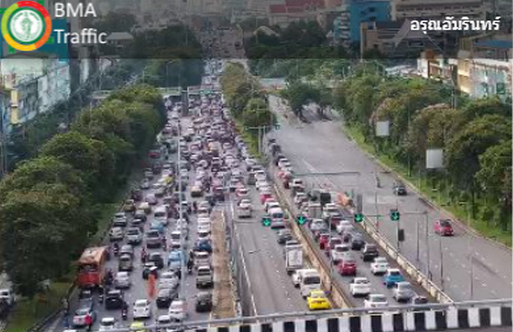 - สะพานพระราม 8 ขาเข้า ท้ายแยกอรุณอมรินทร์