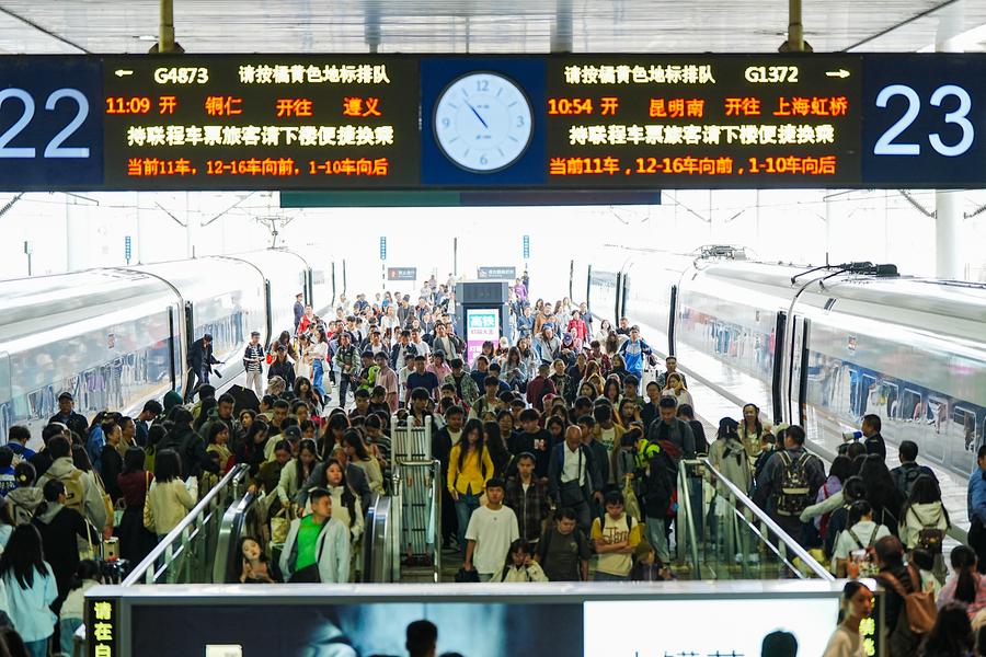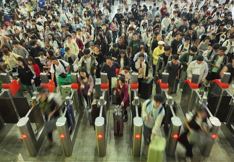 ปักกิ่ง, 1 ต.ค. ซินหัว รายงานว่า -- เก็บตกบรรยากาศประชาชนชาวจีนจำนวนมากออกเดินทางกันอย่างคึกคักในหลายพื้นที่ของประเทศ ขณะช่วงหยุดยาววันชาติจีน ระยะ 1 สัปดาห์ ได้เริ่มต้นขึ้นในวันอังคาร (1 ต.ค.) โดยสถานีขนส่งมีผู้คนเนืองแน่นและท้องถนนเต็มไปด้วยรถราวิ่งสัญจรหนาแน่น