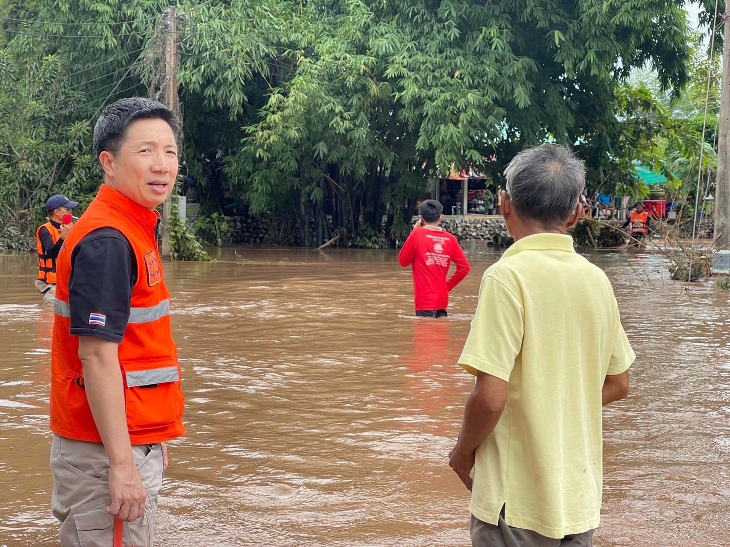 วันนี้(3 ตุลาคม 2567) นายไกรสร กองฉลาด ผู้ว่าราชการจังหวัดขอนแก่น มอบหมายให้ นายยุทธพร พิรุณสาร รองผู้ว่าราชการจังหวัดขอนแก่น พร้อมด้วยนายโสภณ เจริญพร หัวหน้าสำนักงานปัองกัน และบรรเทาสาธารณภัยจังหวัด และเจ้าหน้าที่ ลงพื้นที่ช่วยเหลือประชาชนที่ประสบอุทกภัยจากเหตุน้ำป่าไหลหลากฉับพลันท่วมพื้นที่บ้านโนนเตาเหล็กหมู่ 10 บ้านหนองแห้วหมู่ 3 ตำบลวังสวาบ บ้านนาท่าลี่ บ้านสะแกเครือ ตำบลนาฝาย อ.ภูผาม่าน จ.ขอนแก่น โดยปริมาณน้ำได้ไหลเข้าท่วมบ้านเรือนราษฎร 2 ตำบล 7 หมู่บ้าน รวม 209 หลังคาเรือน รวมถึงพื้นที่เกษตรกรรมบางส่วน โดยมีระดับน้ำสูงสุดที่บ้านโนนเตาเหล็ก ตำบลวังสวาท ระดับน้ำสูงประมาณ 60 เซนติเมตร คาดว่าปริมาณน้ำจะลดลงในช่วงเย็นวันนี้ แต่จะต้องใช้เวลาเนื่องจากน้ำล้นตลิ่งแล้วมีน้ำจากเขาลงมาปะทะทำให้การไหลของน้ำช้าลง ซึ่งทางจังหวัดขอนแก่นนอกเหนือจากเข้าพื้นที่ดูแลประชาชนอย่างใกล้ชิดแล้ว ยังได้มอบถุงยังชีพ และสิ่งของจำเป็นให้แก่ประชาชนที่ประสบภัยเป็นการบรรเทาความเดือดร้อนในเบื้องต้นด้วยแล้ว