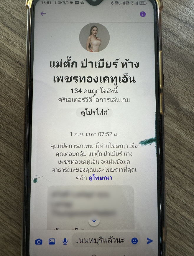 ตนยอมรับว่าได้ติดตามเพจแม่ตั๊กกับป๋าเบียร์มานานแล้ว เห็นว่าเขามีฐานะดี ชอบทำบุญ แม้ถูกจับไปแล้วแต่ก็ยังรับซื้อสินค้าคืนให้กับลูกค้าที่ซื้อของไปมีความน่าเชื่อถือ กว่าตนจะมารู้ตัวว่าเป็นมิจฉาชีพสวมรอยเปิดเพจปลอมมาหลอกดูดเงินไป จึงให้หยุดโอนเงินและห้ามทำธุรกรรมใดๆกับทางเพจนี้ไปก่อน ตนอยากฝากผู้คนให้ระวังอย่าหลงเชื่ออะไรง่ายๆ ในยุคนี้ เงินเราอยู่ในกระเป๋าเราดีที่สุด ก่อนจะตัดสินใจกับธุรกรรมอะไรไปต้องมีสติให้มากๆ อย่าพลาดท่าเหมือนกับตน