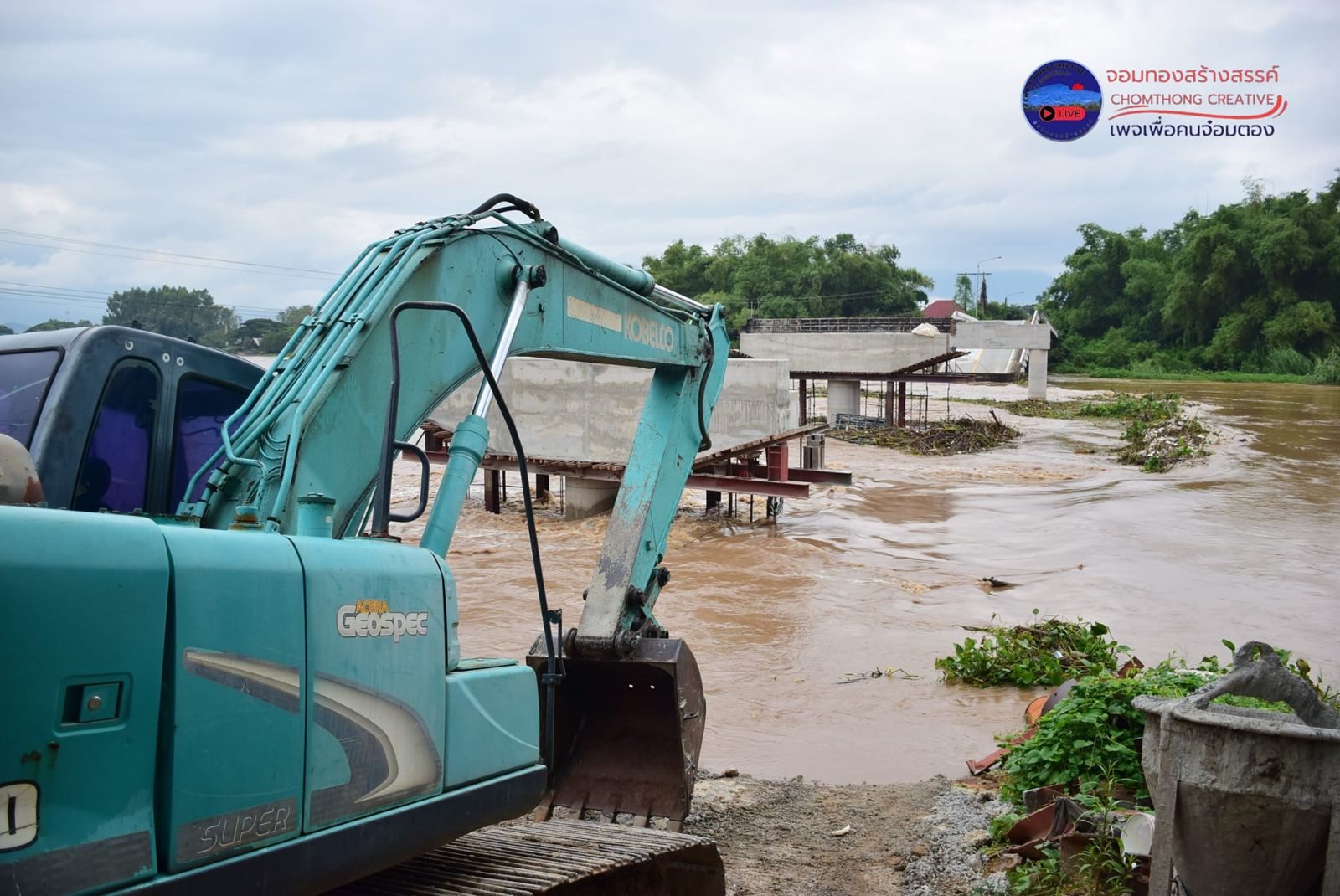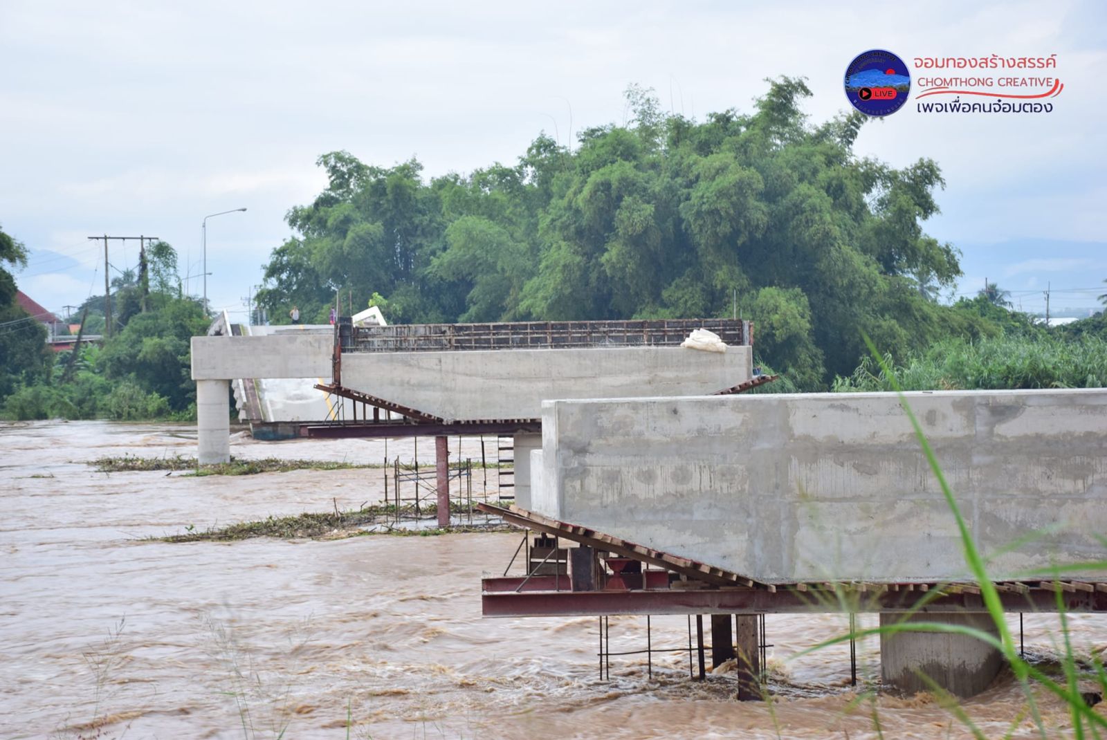 ภาพความเสียหายของสะพานวังสะแกง ข้ามแม่น้ำปิงเชื่อมต่อระหว่างอำเภอจอมทอง จังหวัดเชียงใหม่ - อำเภอเวียงหนองล่อง จังหวัดลำพูน หลังจากสะพานได้พังและหักในช่วงเที่ยงคืนเศษ ของวันที่ 5 ต.ค.67