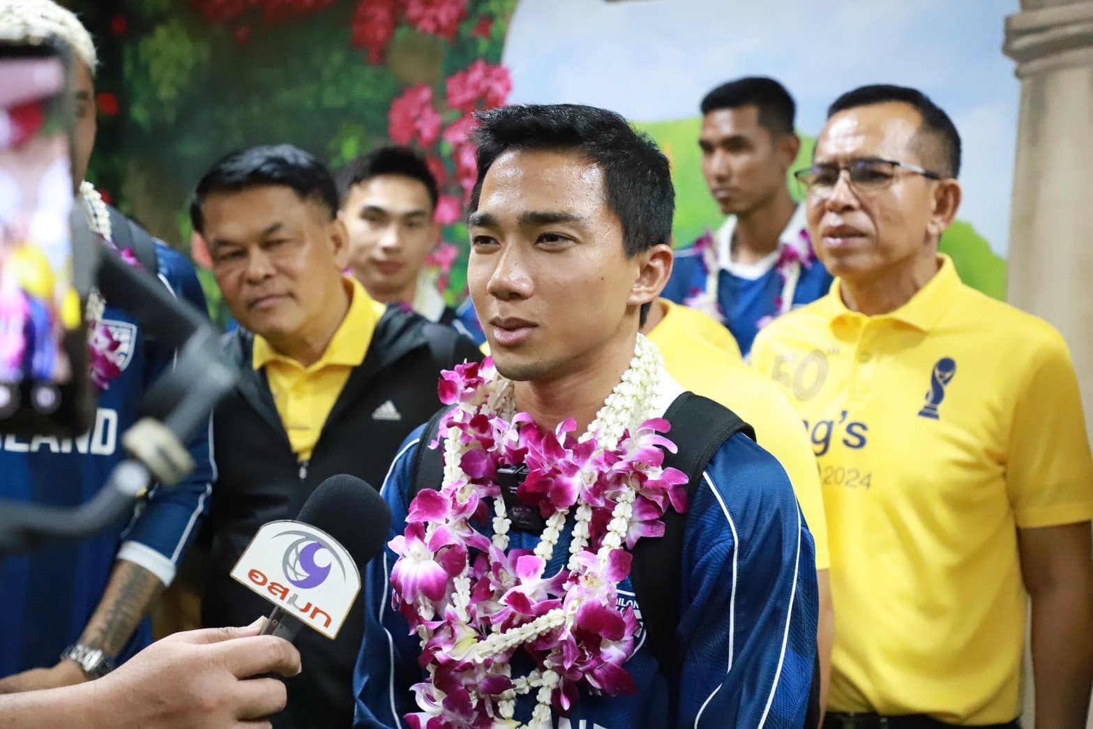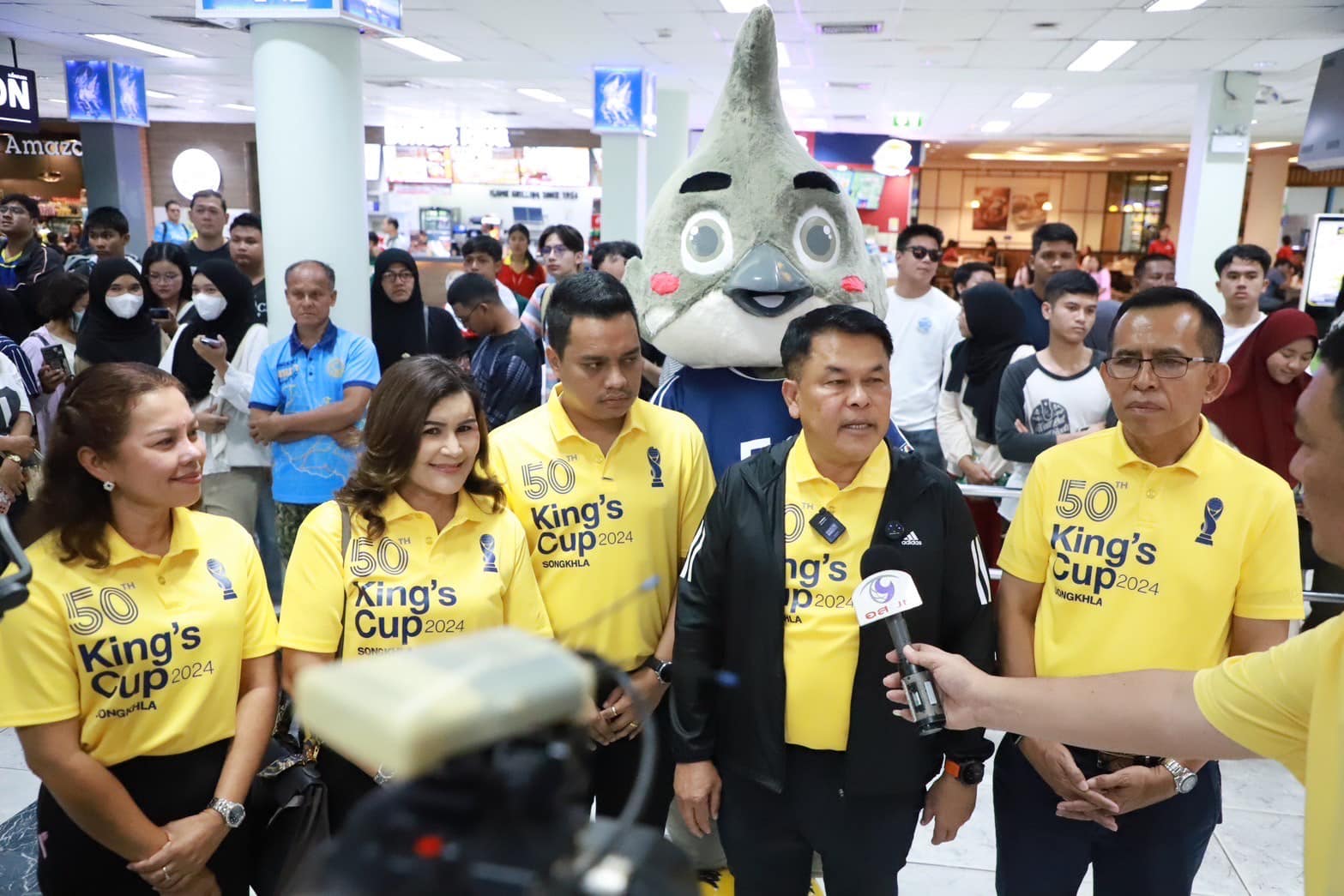 วันที่ 7 ตุลาคม 2567 ที่ท่าอากาศยานหาดใหญ่ จังหวัดสงขลา นายสุพิศ พิทักษ์ธรรม อธิบดีกรมฝนหลวงและการบินเกษตร ประธานคณะกรรมการอำนวยการจัดการแข่งขันฟุตบอลชิงถ้วยพระราชทาน "คิงส์คัพ" ประจำปี 2567 นายเศวต เพชรนุ้ย รองผู้ว่าราชการจังหวัดสงขลา นายอำนวย พิณสุวรรณ รองประธานคณะกรรมการอำนวยการจัดการแข่งขันฯ นางสุนิสา รามแก้ว ประชาสัมพันธ์จังหวัดสงขลา นางอุไรวรรณ จันลาภ ผู้อำนวยการสำนักงานการกีฬาแห่งประเทศไทย จังหวัดสงขลา ให้การต้อนรับนักกีฬาทีมชาติไทย นำโดย นายชนาธิป สรงกระสินธิ์ "เมสซี่เจ" กัปตันทีมในศึก คิงส์คัพ ครั้งที่ 50 ณ จังหวัดสงขลา ท่ามกลางแฟนบอลร่วมต้อนรับอย่างหนาแน่น