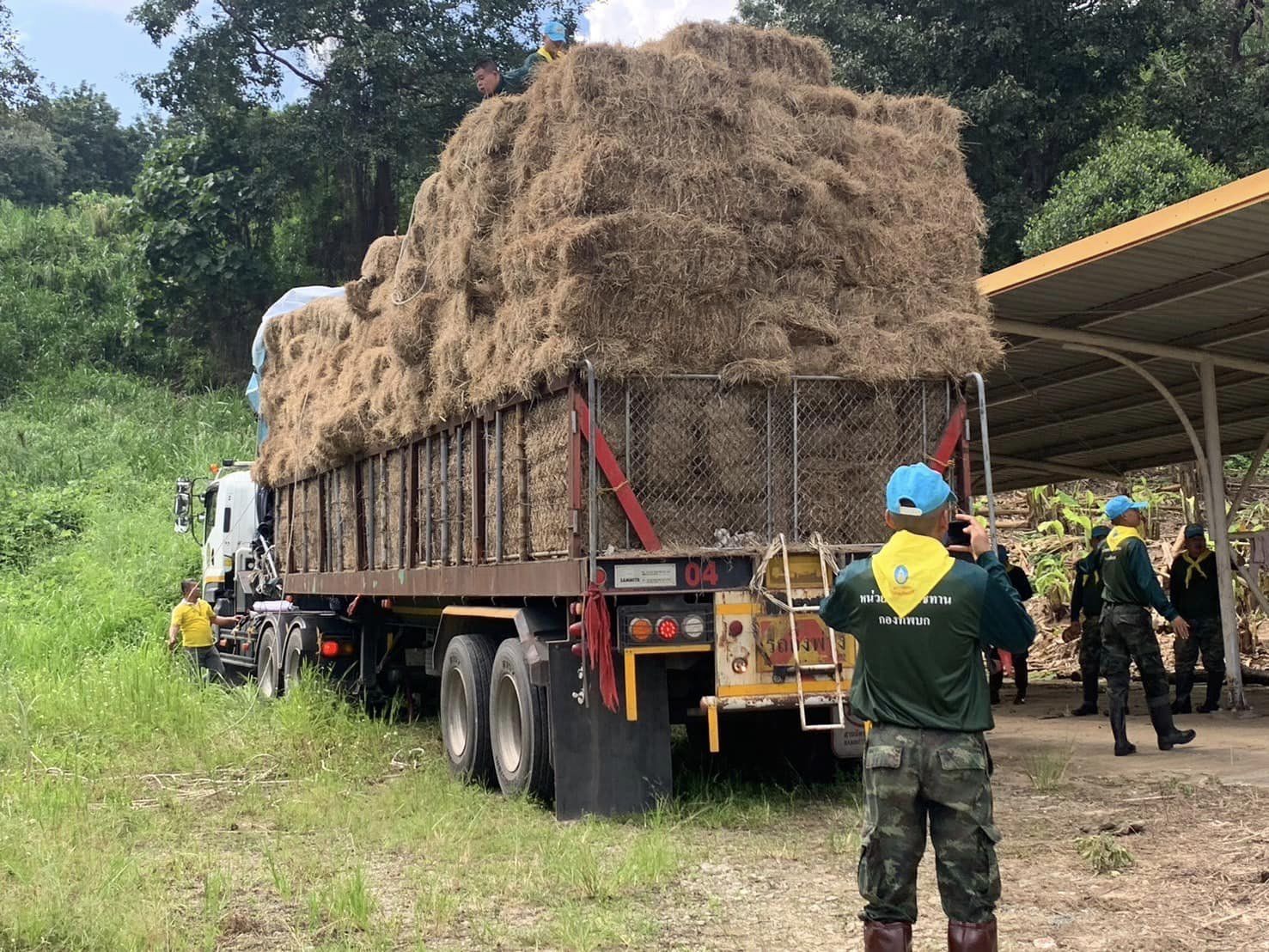 (8 ต.ค.67) นายสัตวแพทย์สมชวน รัตนมังคลานนท์ อธิบดีกรมปศุสัตว์ เปิดเผยว่า เมื่อวันที่ 7 ตุลาคม 2567 มอบหมายให้นายสัตวแพทย์ประภาส ภิญโญชีพ รองอธิบดีกรมปศุสัตว์ และนายพงษ์พันธ์ ธรรมมา รองอธิบดีกรมปศุสัตว์ นำเจ้าหน้าที่ของกรมปศุสัตว์เดินทางไปส่ง “หญ้าอาหารสัตว์พระราชทาน” เพื่อช่วยเหลือปางช้างที่ประสบอุทกภัยในอำเภอแม่แตง จังหวัดเชียงใหม่ สำหรับหญ้าที่นำส่งไปช่วยเหลือปางช้างในอำเภอแม่แตง สามารถให้กินได้ทั้งช้าง วัว ควาย แพะ และแกะ โดยนำไปทั้งหญ้าสดและหญ้าแห้ง แบ่งเป็นหญ้าสด 3,000 กิโลกรัม หญ้าแห้ง 32,000 กิโลกรัม รวมทั้งสิ้น 35,000 กิโลกรัมหรือ 35 ตัน ในการส่งมอบ “หญ้าอาหารสัตว์พระราชทาน” เพื่อช่วยเหลือปางช้างในอำเภอแม่แตงครั้งนี้ กรมปศุสัตว์ร่วมกับนายชัยณรงค์ นันตาสาย นายอำเภอแม่แตง พันโทวัชระ ถึกสุวรรณ์ ผบ. ร.7 พัน.2 นำส่งไปเก็บไว้ที่โครงการอนุรักษ์พันธุกรรมพืชอันเนื่องมาจากพระราชดำริ สมเด็จพระเทพรัตนราชสุดาฯ สยามบรมราชกุมารี ศูนย์อนุรักษ์และพัฒนาท้องถิ่น ตำบลกึ๊ดช้าง ซึ่งใช้เป็นสถานที่จัดเก็บรักษาเสบียงอาหารสัตว์ เพื่อนำไปกระจายช่วยเหลือปางช้างต่างๆ ที่ได้รับผลกระทบในพื้นที่ต่อไป