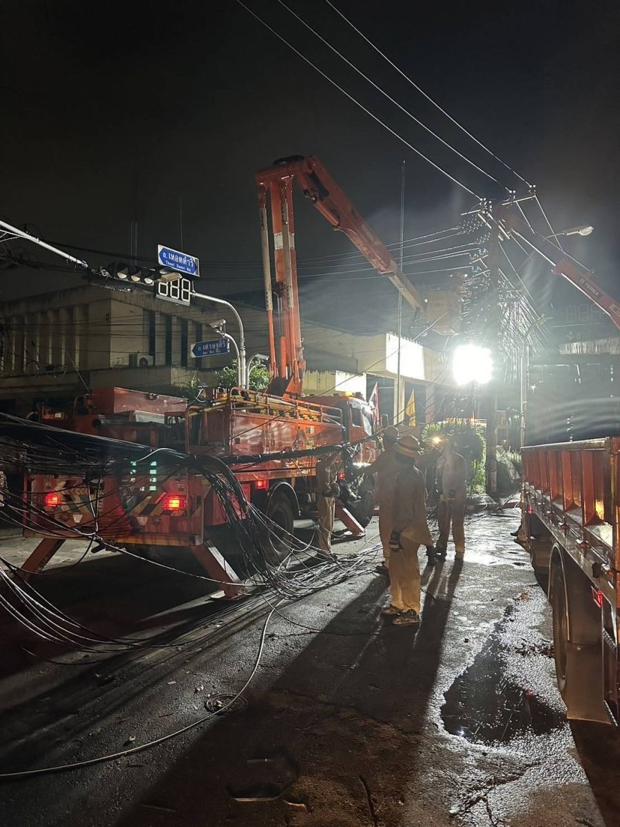 การไฟฟ้านครหลวง MEA ลงพื้นที่แก้ไขเหตุต้นไม้ล้มเหนี่ยวรั้งสายไฟทำให้เสาไฟฟ้าล้ม
