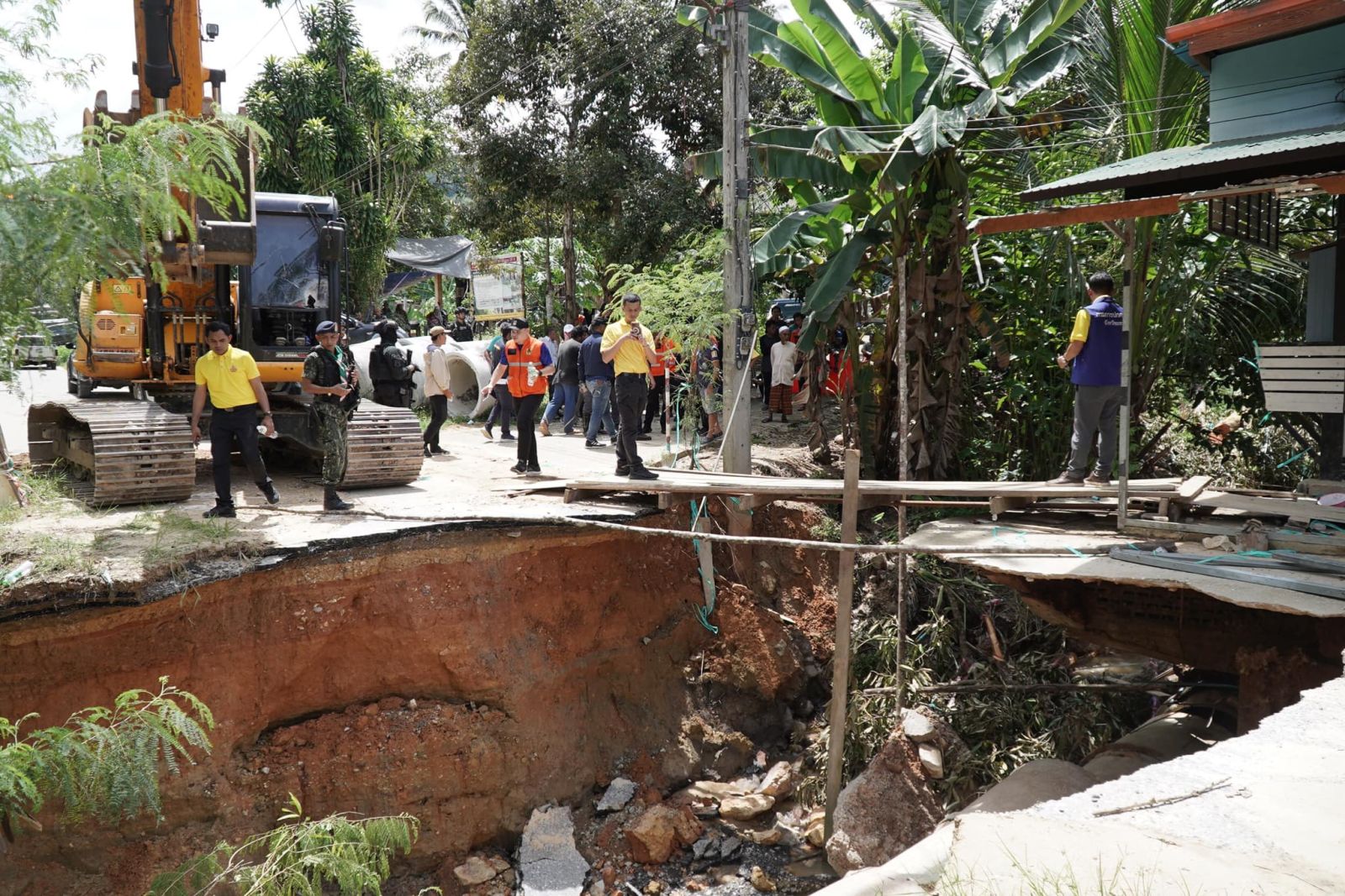 จากนั้นได้ติดตามความเสียหาย ที่โรงเรียนบ้านธารมะลิ ซึ่งโรงอาหารได้รับความเสียหายจากน้ำไหลทะลักกำแพง และถนนในหมู่บ้าน หมู่ที่ 4 บ้านธารมะลิ ถูกน้ำกัดเซาะได้รับความเสียหาย 1 จุด ขณะนี้ทางแขวงทางหลวง และทางหลวงชนบท ได้นำเครื่องจักร ทำการขุดพร้อมทั้งวางแนวท่อน้ำลอด และทำการเปิดเส้นทางเพื่อให้ประชาชนในหมู่บ้านสัญจรได้ จากนั้น ได้เดินทางติดตามเหตุน้ำไหลหลาก ที่ถนนทางหลวงแผ่นดิน สาย 410 ยะลา - เบตง บริเวณ กม.38 หมู่ที่ 6 ต.อัยเยอร์เวง อ.เบตง ซึ่งขณะนี้พบว่าน้ำทะลักไหลลงมาจากที่สูง ลงสู่เส้นทางถนน ทางเจ้าหน้าที่แขวงทางหลวง ได้นำรถแบคโฮ และเครื่องจักร เพื่อเปิดเส้นให้รถได้สัญจรได้ พร้อมทั้งประสานการไฟฟ้าส่วนภูมิภาคอำเภอเบตง เร่งดำเนินการ ซึ่งขณะนี้ ทั้งเจ้าหน้าที่ขณะที่ฝ่ายปกครอง ตำรวจ ตชด. และหน่วยงานที่เกี่ยวข้อง เร่งดำเนินการให้ความช่วยเหลืออย่างเต็มที่