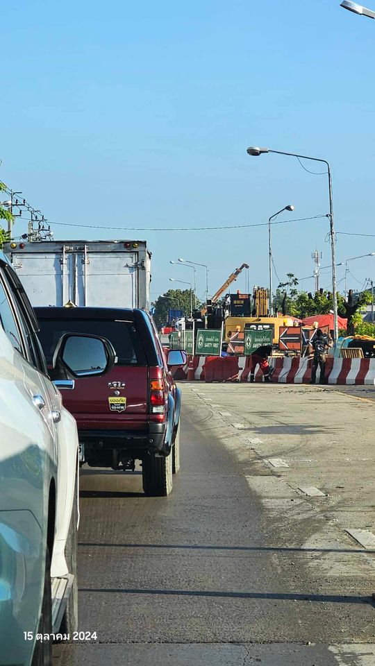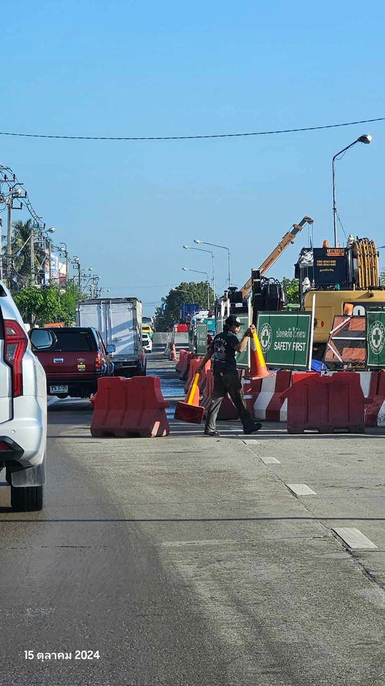 ถนนพุทธมณฑลสาย 1 เลี้ยวเข้ามาจากถนนเพชรเกษมเล็กน้อย มีงานปิดเบี่ยงแนวก่อสร้าง ในช่องทางขวา รถสามารถผ่านได้แค่ช่องทางซ้าย รถติดมาก ท้ายแถวสะสมอยู่ที่สะพานข้ามคลองบางจาก #รายงานจราจร #รถติด #FM91