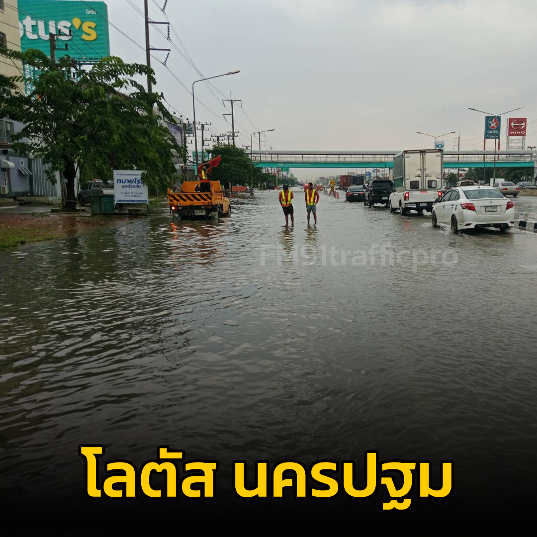 เพจเฟซบุ๊ก “สำนักงานประชาสัมพันธ์จังหวัดนครปฐม” รายงานสถานการณ์น้ำท่วมขัง ถนนเพชรเกษม หน้าห้างโลตัส และห้างเซ็นทรัล