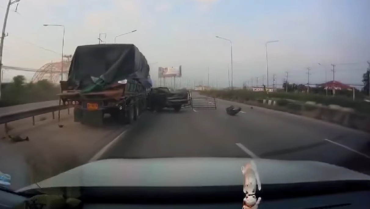 อุบัติเหตุ รถกระบะ ชนกับรถบรรทุก ก่อนเสียหลักชนกับรถพ่วง บนถนนพระราม 2 มีผู้เสียชีวิตเป็นเด็กหญิงวัย 10 ขวบ จ.สมุทรสาคร