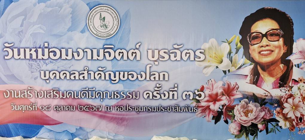 วันนี้ (18 ตุลาคม 2567) เวลา 11.00 น. มูลนิธิอนุสรณ์หม่อมงามจิตต์ บุรฉัตร จัดงาน“วันหม่อมงามจิตต์ บุรฉัตร บุคคลสำคัญของโลก” ครั้งที่ 36 โดยมี พลอากาศเอก ชลิต พุกผาสุข องคมนตรี เป็นประธานในงาน เพื่อมอบรางวัล “หม่อมงามจิตต์ บุรฉัตร บุคคลสำคัญของโลก” รางวัลสร้างเสริมคนดี มีคุณธรรม ให้แก่ บุคคลสาขาอาชีพต่างๆ ทั่วประเทศ รวม 139 คน และเพื่อทำบุญอุทิศส่วนกุศลในวันคล้ายวันถึงแก่อนิจกรรมของหม่อมงามจิตต์ฯ โดยมีหน่วยราชการต่างๆและองค์การสาธารณกุศล จำนวนมาก ร่วมจัดงาน ณ หอประชุมกรมประชาสัมพันธ์ ซอยอารีย์สัมพันธ์
