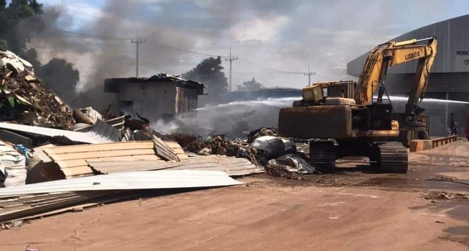 ไฟไหม้กองกระดาษ, พลาสติก ในร้านรับซื้อของเก่า จนท.พร้อมรถดับเพลิง รุดใช้น้ำควบคุมทัน ก่อนจะลุกลามเข้าโกดัง จ.ปราจีนบุรี
