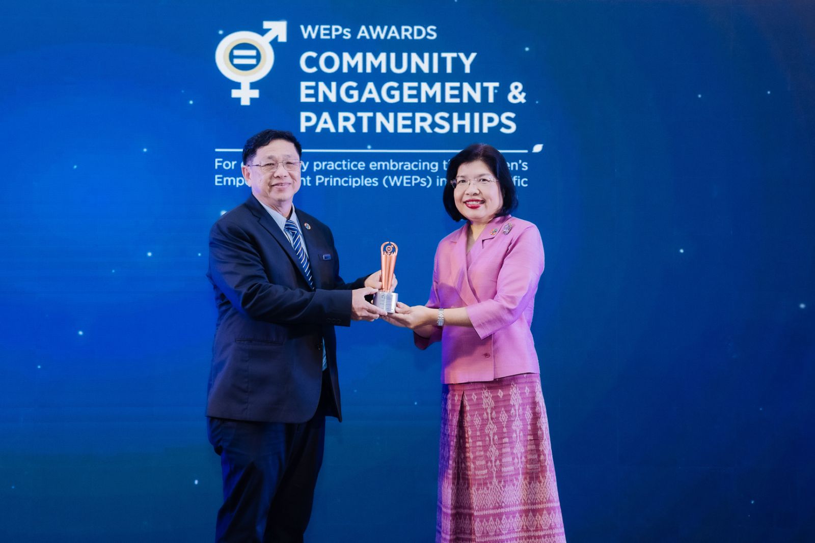 รางวัลสาขาการส่งเสริมความเสมอภาคทางเพศผ่านกิจกรรมชุมชนและอุตสาหกรรม เป็นรางวัลสำหรับองค์กรที่ส่งเสริมความเท่าเทียม ทางเพศผ่านการมีส่วนร่วมกับชุมชน รวมถึงการบูรณาการกลยุทธ์เพื่อส่งเสริมความเท่าเทียมทางเพศและการพัฒนาอย่างยั่งยืนผ่านโครงการการกุศล หรือโครงการเพื่อสังคม รวมทั้งร่วมมือกับองค์กรพัฒนาเอกชน องค์กรระหว่างประเทศ และองค์กรอื่น ๆ ที่มุ่งมั่นส่งเสริมความ เท่าเทียมทางเพศภายในชุมชนให้เกิดความสมดุลมากขึ้น