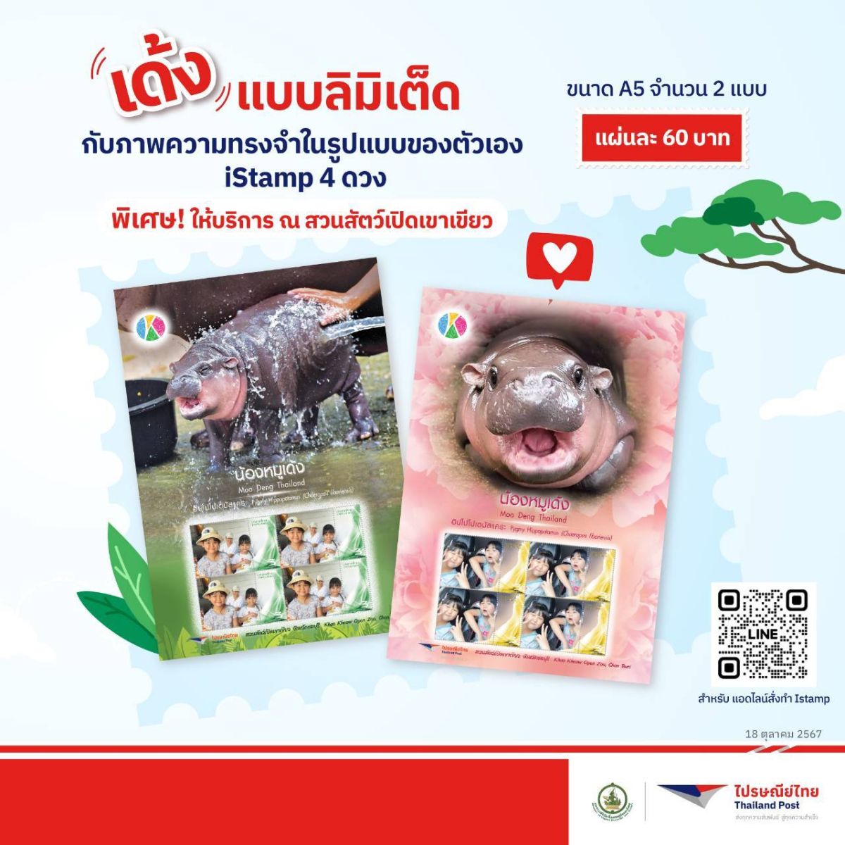 ไปรษณีย์ไทยรับกระแส “หมูเด้งฟีเวอร์” จับมือสวนสัตว์เปิดเขาเขียว เปิดตัว iStamp และโปสต์การ์ด ถ่ายทอดความน่ารักของน้องหมูเด้งขวัญใจคนทั้งโลกผ่านคอลเลกชันสุดพิเศษ