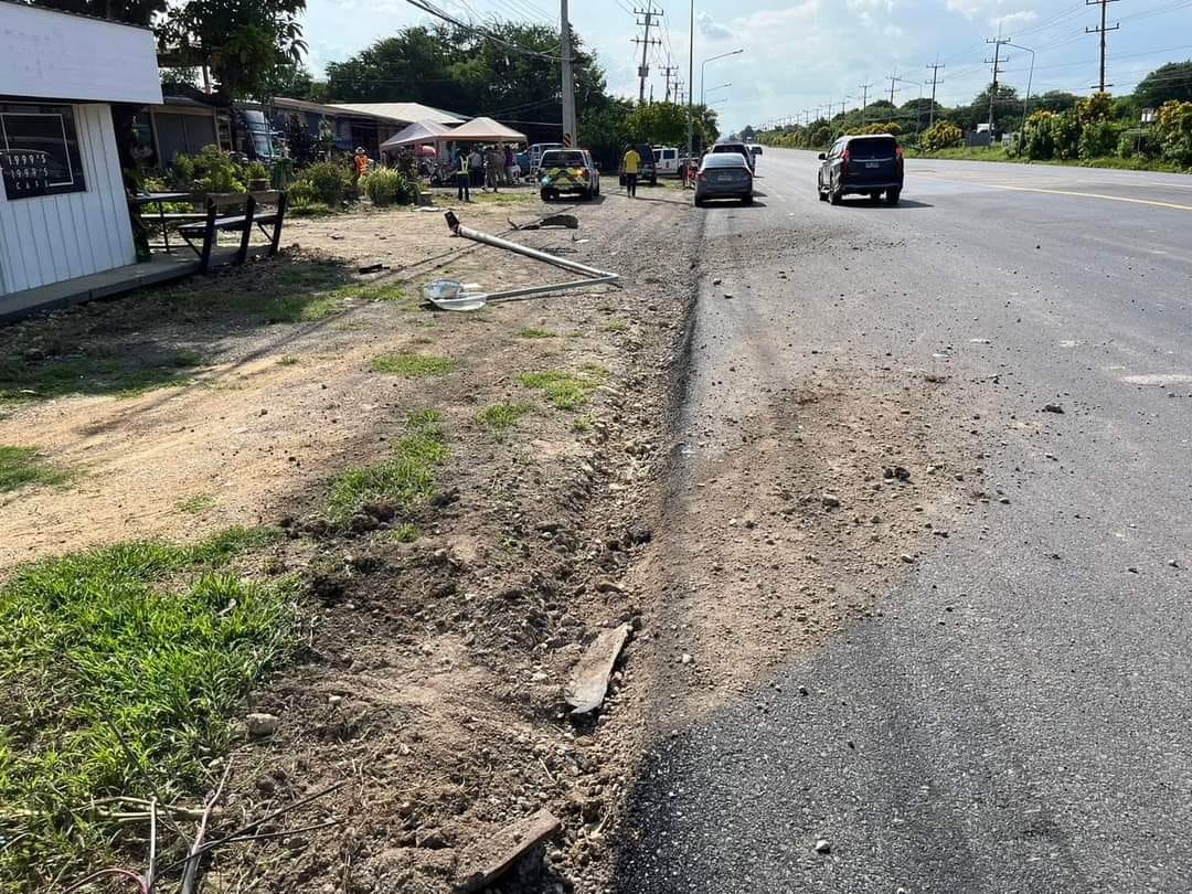 ที่เกิดเหตุ พบรถกระบะ โตโยต้า รีโว่ สีเทา ป้ายทะเบียน สระบุรี ลักษณะชนกับเสาไฟส่องสว่างหัก 1 ต้น แล้วรถเสียหลักพุ่งชนบ้านเรือนประชาชนพังเสียหาย 1 หลัง สภาพรถะบะพลิกตะแคงพังเสียหายยับเยิน ข้างรถยนต์กระบะพบผู้ได้รับบาดเจ็บ 1 ราย นอนหมดสติอยู่ข้างรถยนต์กระบะ
