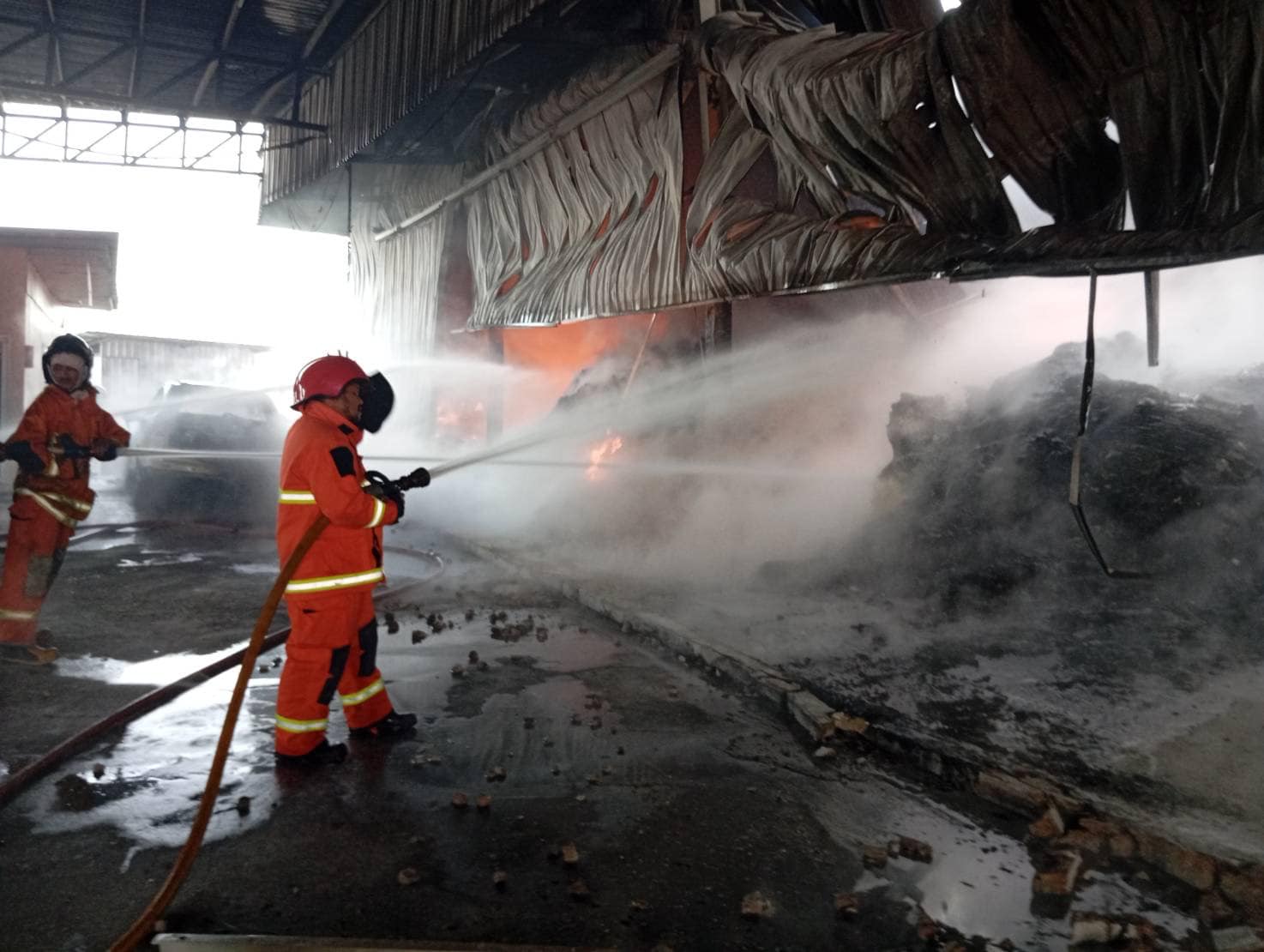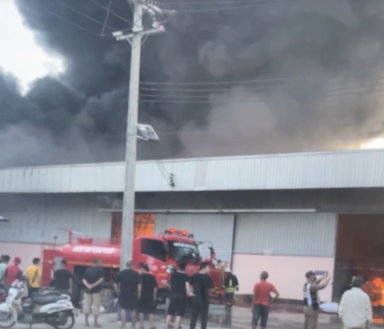 ที่เกิดเหตุพบเพลิงกำลังลุกไหม้ในโกดังให้เช่าเก็บสินค้ารวม 4 โกดัง เจ้าหน้าที่ดับเพลิงต้องเร่งฉีดน้ำ ใช้เวลาประมาณ 2 ชั่วโมง จึงสามารถควบคุมเพลิงไว้ได้