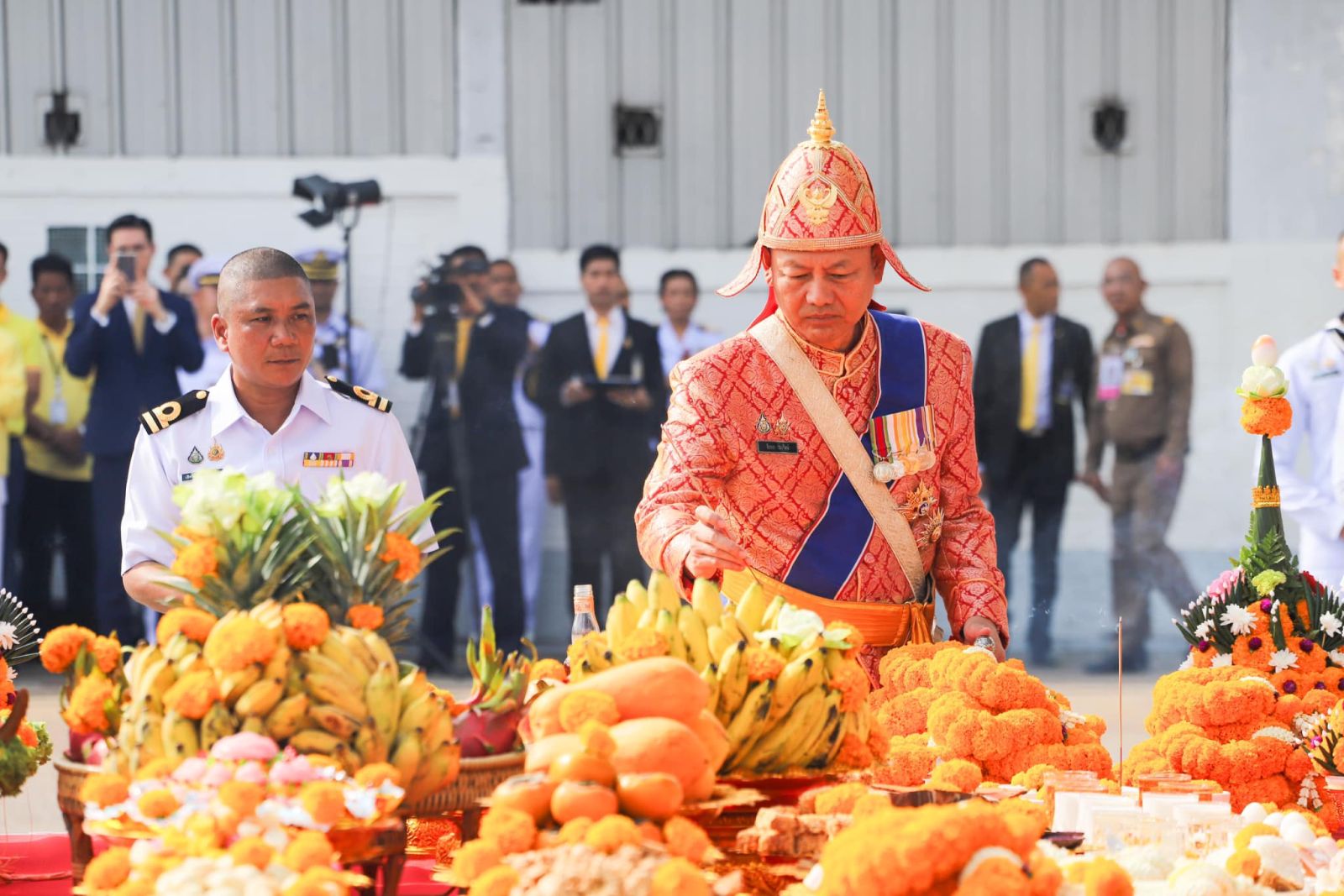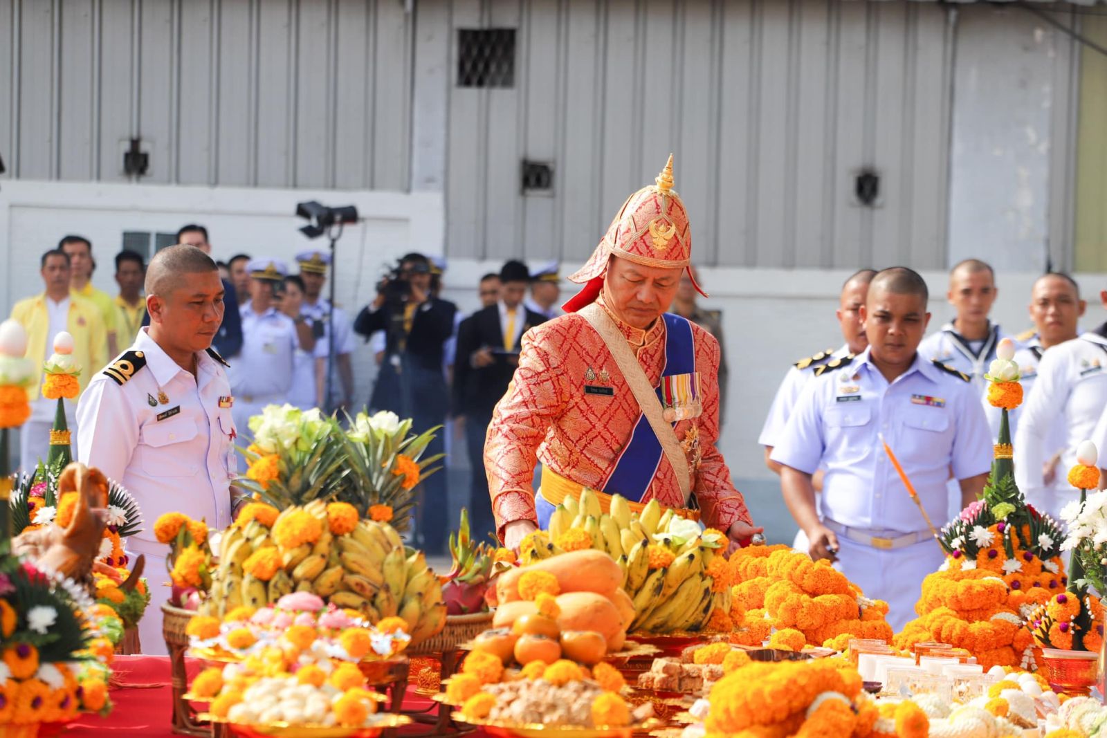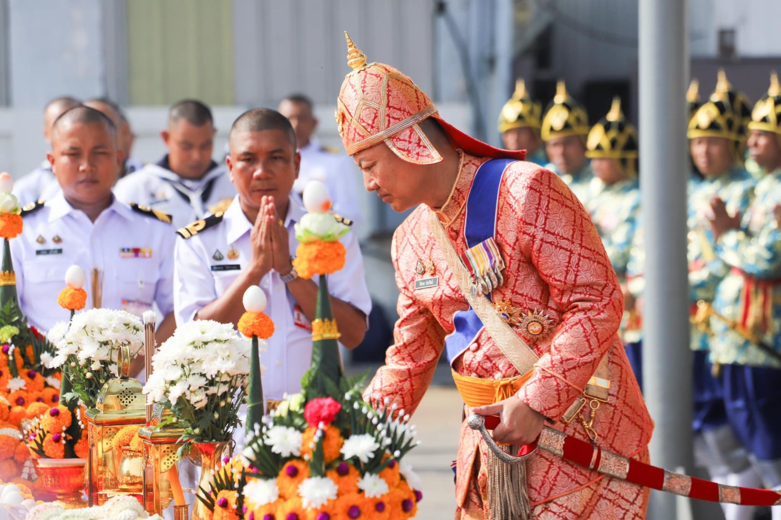 วันที่ 27 ตุลาคม 2567 เวลา 09.09 น. ที่อู่หมายเลข 1 อู่ทหารเรือธนบุรี กรมอู่ทหารเรือ ถนนอรุณอมรินทร์ เขตบางกอกน้อย กรุงเทพมหานคร พลเรือเอก จิรพล ว่องวิทย์ ผู้บัญชาการทหารเรือ เป็นประธานในพิธีบวงสรวงและเซ่นไหว้แม่ย่านางเรือพระราชพิธี เพื่อ เป็นขวัญกำลังใจให้แก่กำลังพลประจำเรือและเจ้าหน้าที่ ในการจัดขบวนพยุหยาตราทางชลมารค ในพระราชพิธีเสด็จพระราชดำเนินทรงบำเพ็ญพระราชกุศลถวายผ้าพระกฐิน ณ วัดอรุณราชวราราม เป็นไปด้วยความเรียบร้อย