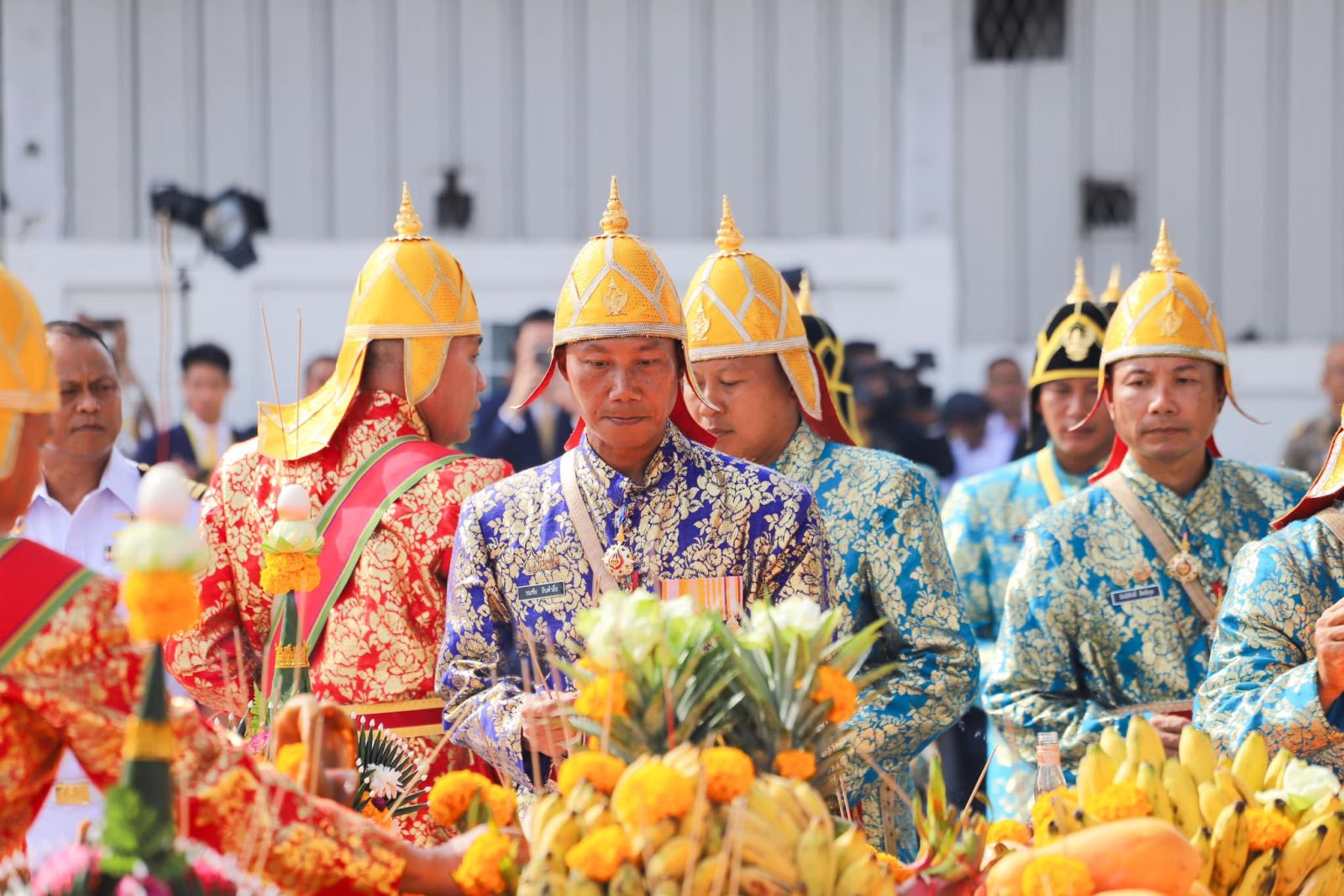 เมื่อพนักงานอ่านโองการ บวงสรวงแม่ย่านางเรือพระที่นั่งและเรือพระราชพิธี ในขบวนพยุหยาตราทางชลมารค ทั้ง 52 ลำจบ ประธานในพิธีได้มอบพวงมาลัยให้กับผู้ควบคุมเรือพระที่นั่ง และนายเรือพระที่นั่ง