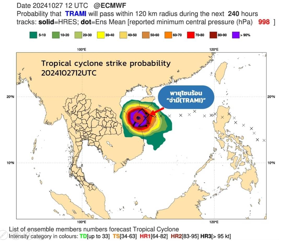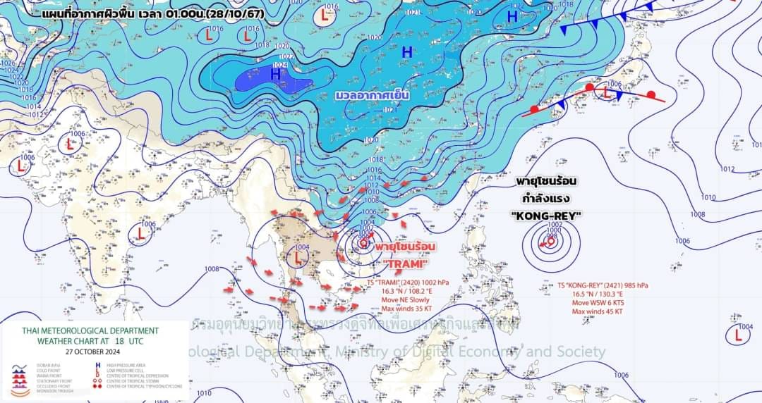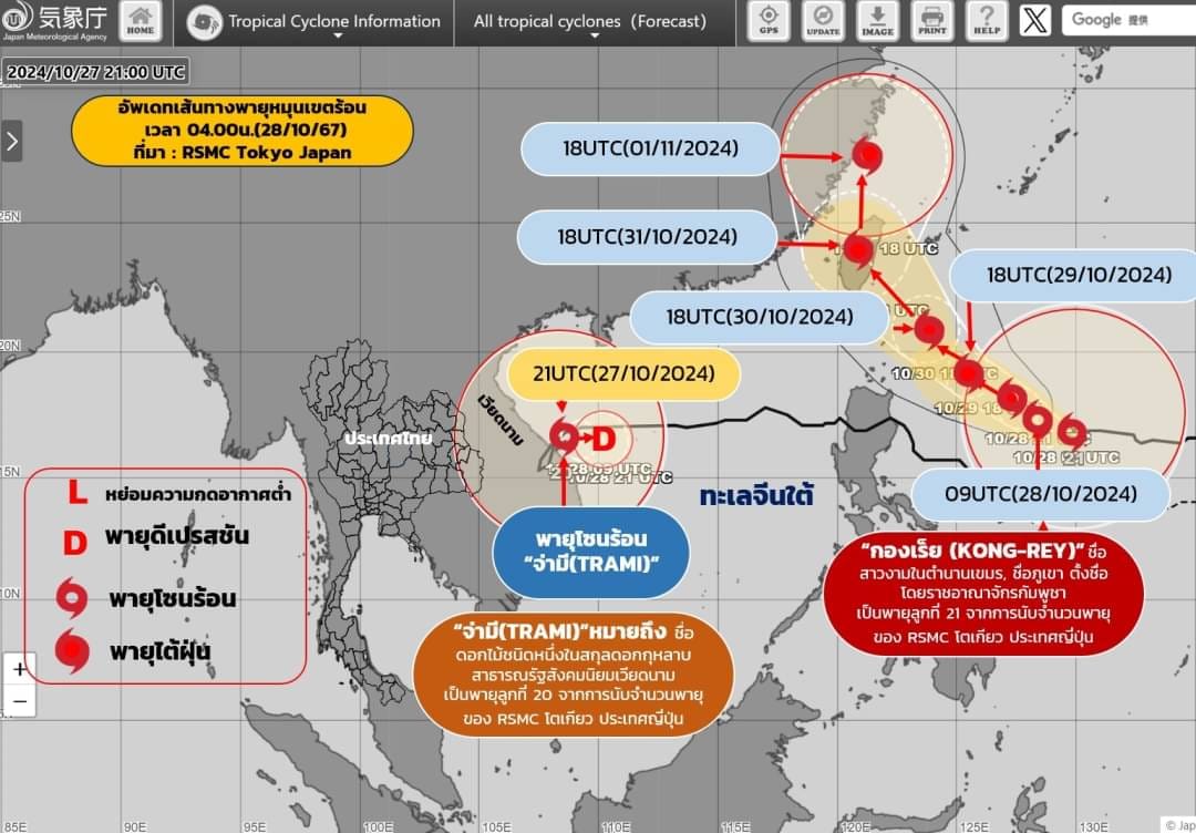 กรมอุตุนิยมวิทยา อัปเดตสถานการณ์พายุโซนร้อน “จ่ามี” เวลา 04.00 น. วันที่ 28 ตุลาคม 2567