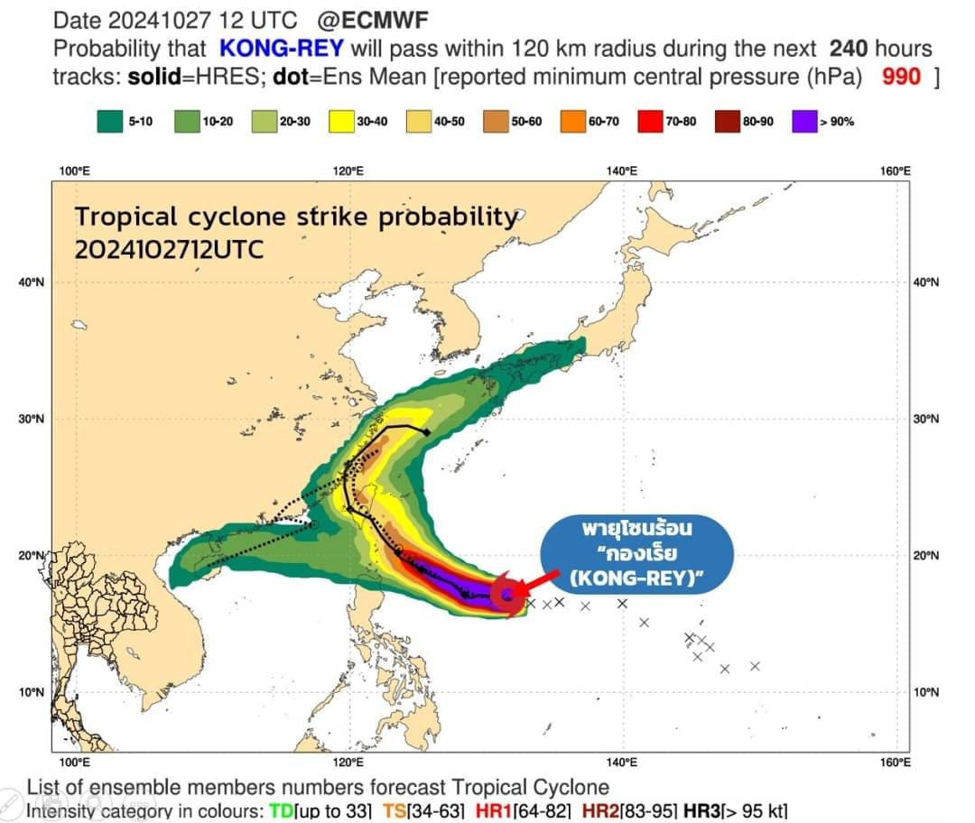 ส่วนพายุโซนร้อนกำลัง "กองเร็ย" ที่เคลื่อนตัวในมหาสมุทรแปซิฟิกตะวันตก ยังเคลื่อนตัวทางตะวันตก พายุนี้ยังอยู่ห่างจากประเทศ ยังไม่มีผลกระทบกับประเทศไทยในระยะนี้ อากาศบริเวณประเทศไทยจะเริ่มเย็นลงชัดเจนตั้งแต่ต้นเดือน พ.ย.67