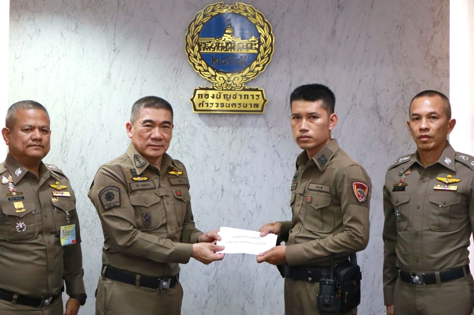 พลตำรวจโท ธิติ แสงสว่าง ผู้บัญชาการตำรวจนครบาล มอบประกาศเกียรติคุณให้แก่ ดาบตำรวจ คธาวุฒิ กู้ทรัพย์ ผู้บังคับหมู่ป้องกันปราบปรามสถานีตำรวจนครบาลสุทธิสาร ผู้ปฏิบัติหน้าที่ดีเด่น ณ ห้องประชุมปารุสกวัน 2