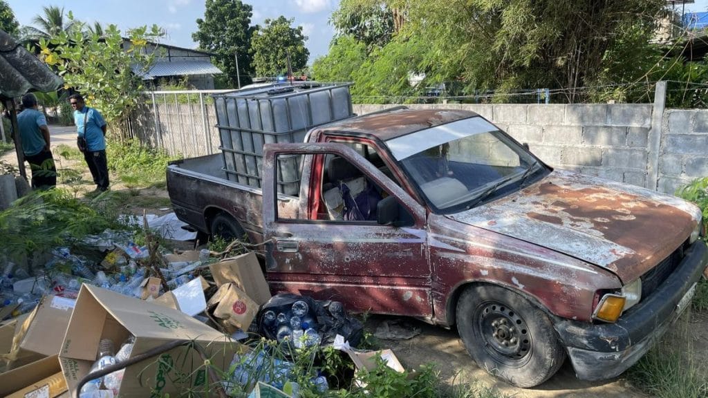 ที่เกิดเหตุ พบรถกระบะ อีซูซุ สีแดง ป้ายทะเบียน ระยอง จอดอยู่โดยท้ายกระบะบรรทุกถังน้ำขนาด 1,000 ลิตร และที่ใต้ท้ายกระบะ พบร่างผู้เสียชีวิต ทราบชื่อต่อมาคือ นางแต้ง อายุ 84 ปี สภาพศพนอนคว่ำหน้า สวมเสื้อคอกระเช้าสีฟ้าคลุมทับด้วยเสื้อเชิ้ตสีขาวลายดอก และนุ่งผ้าถุงสีชมพู มีบาดแผลบริเวณศีรษะที่ถูกรถเหยียบจนกะโหลกและใบหน้ายุบ หลานชายวัย 25 ปีของผู้เสียชีวิตนั่งร่ำไห้อยู่ข้างร่างยายผู้เป็นที่รัก สร้างความสะเทือนใจให้กับผู้เห็นเหตุการณ์